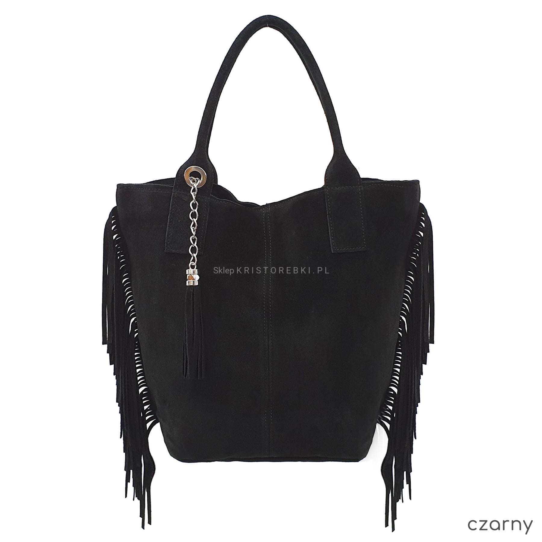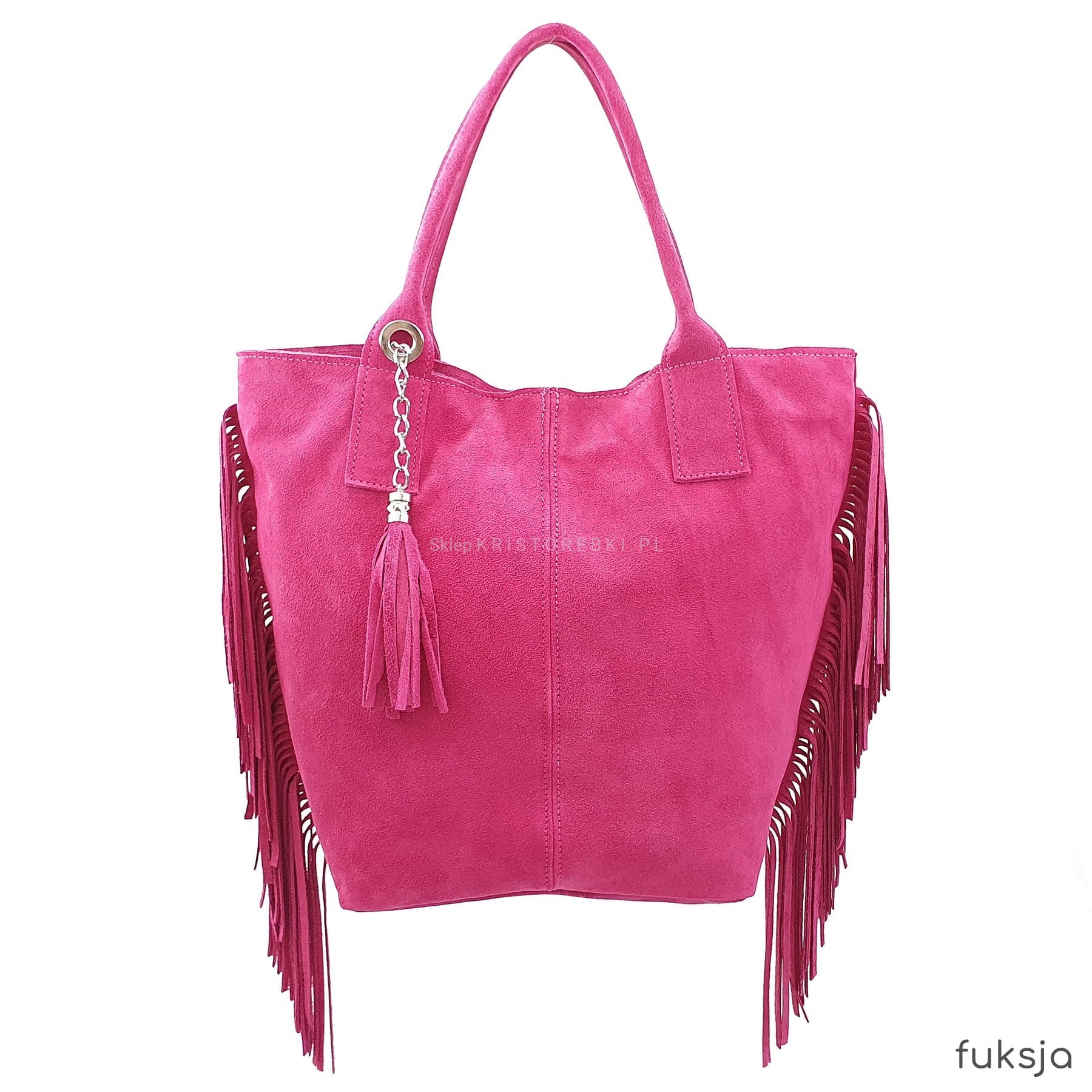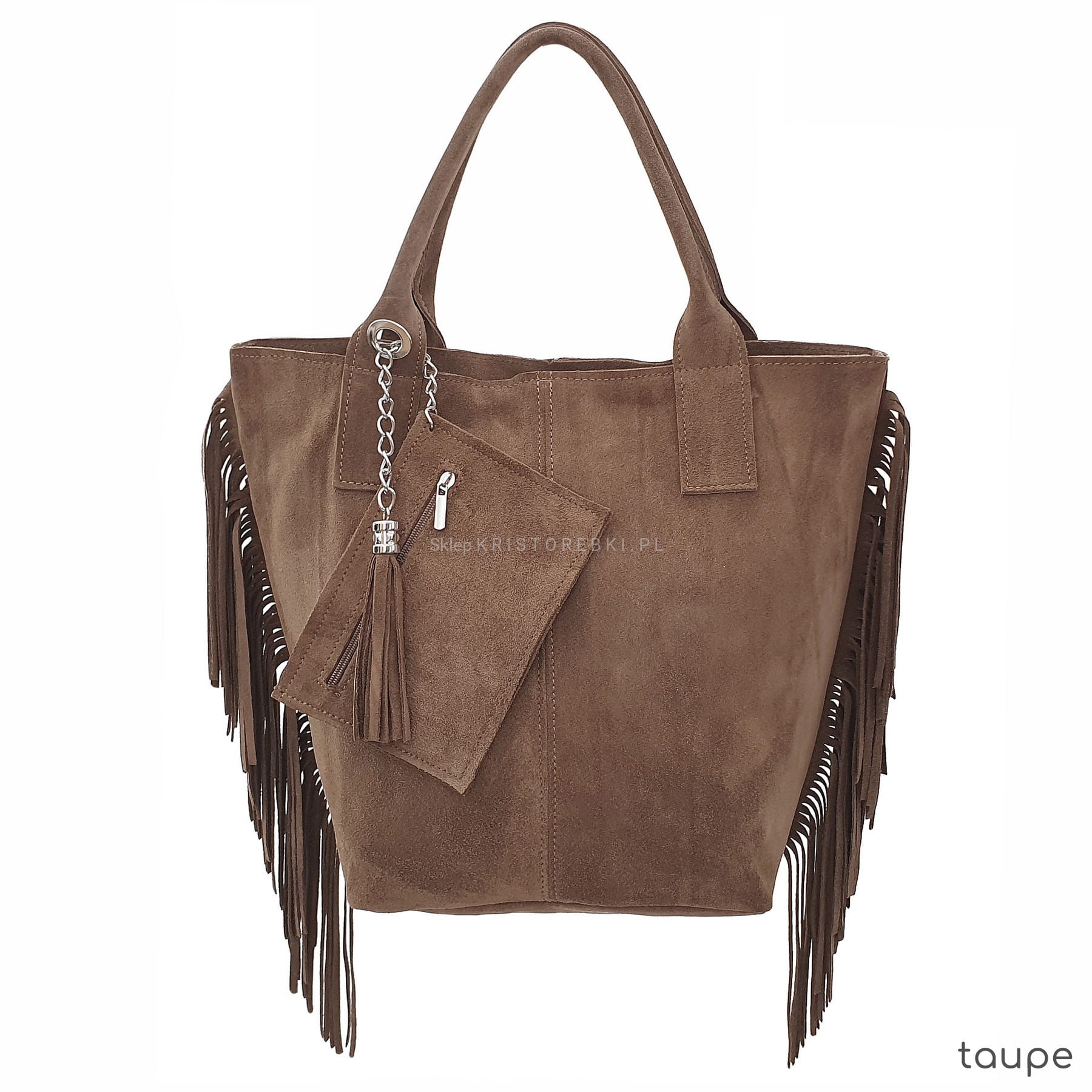 VERA PELLE torebka damska zamszowa shopper z frędzlami i saszetką V460 kolory