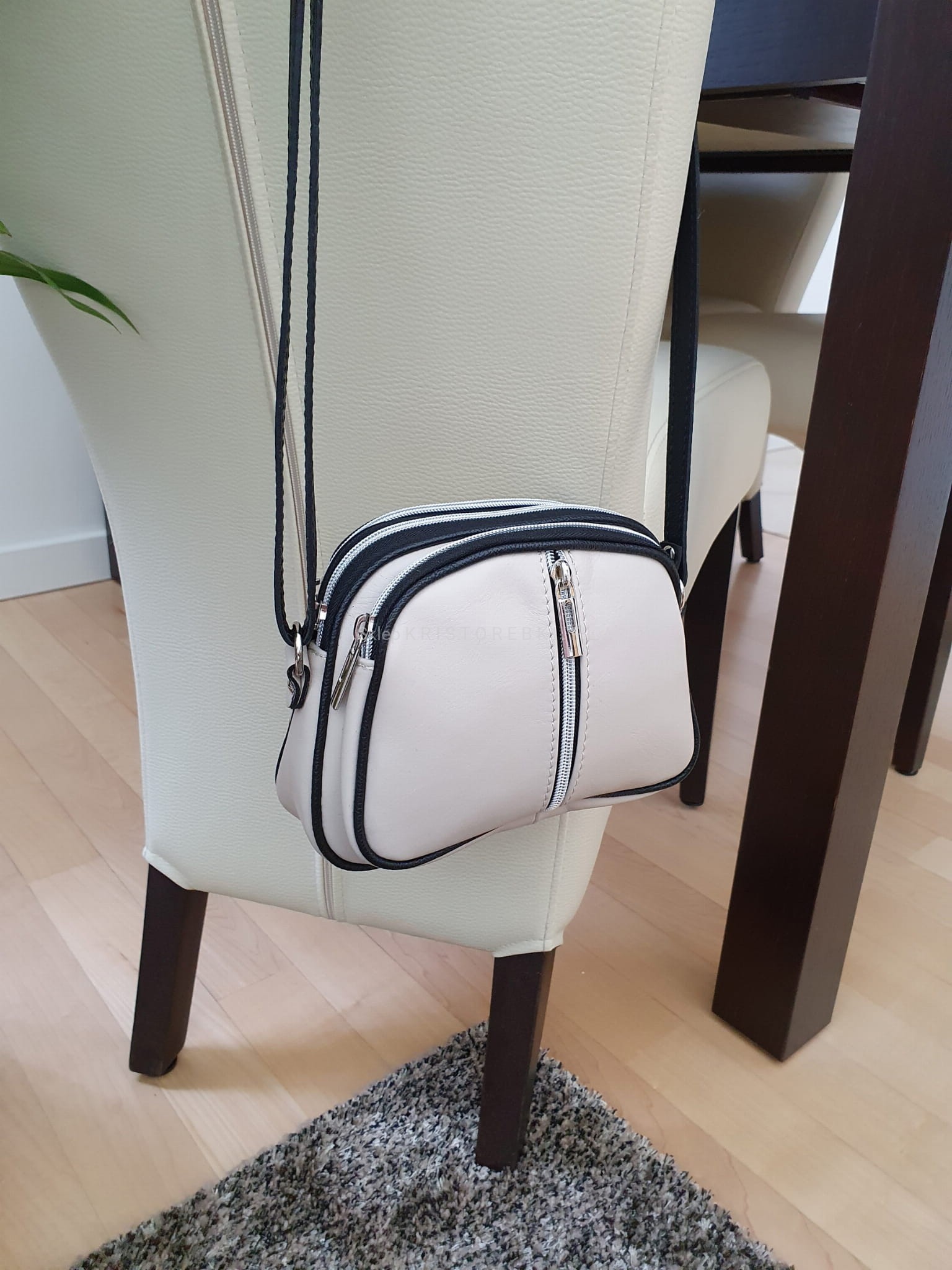 VERA PELLE torebka damska skórzana listonoszka 3 komorowa z paskiem na ramię V463 beżowa