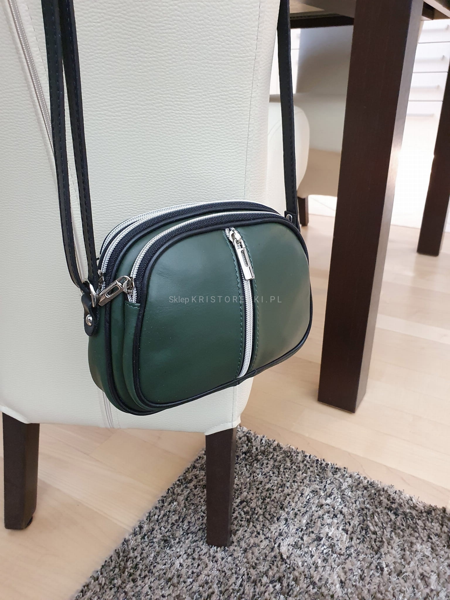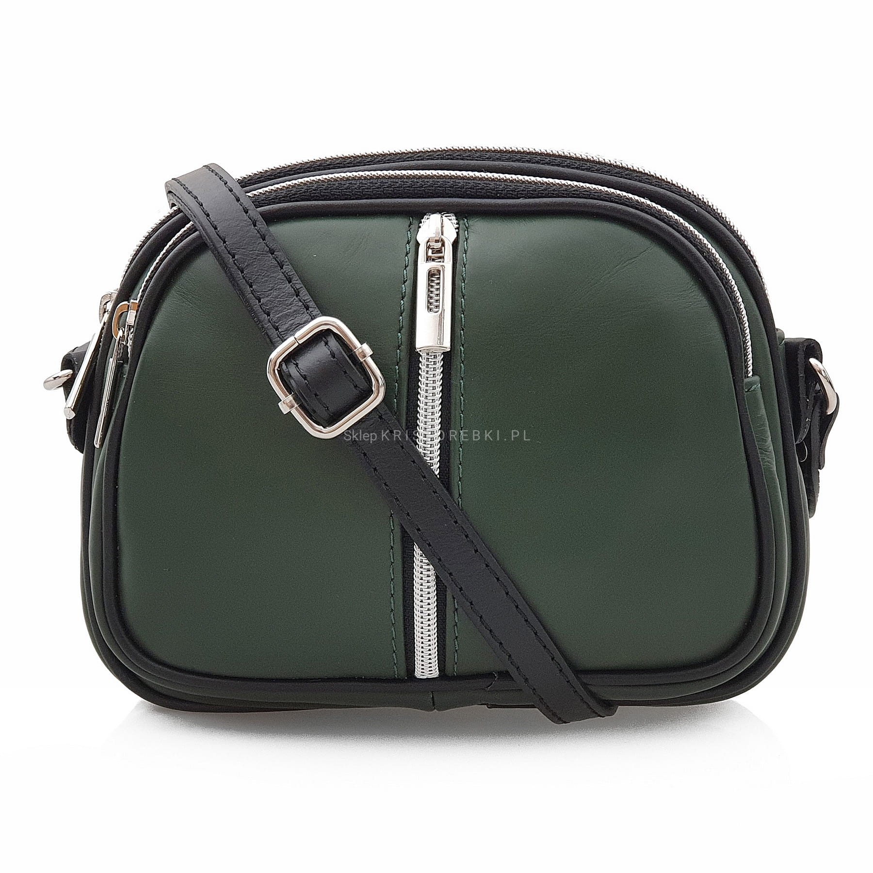 VERA PELLE torebka damska skórzana listonoszka 3 komorowa z paskiem na ramię V463 ciemna zielona
