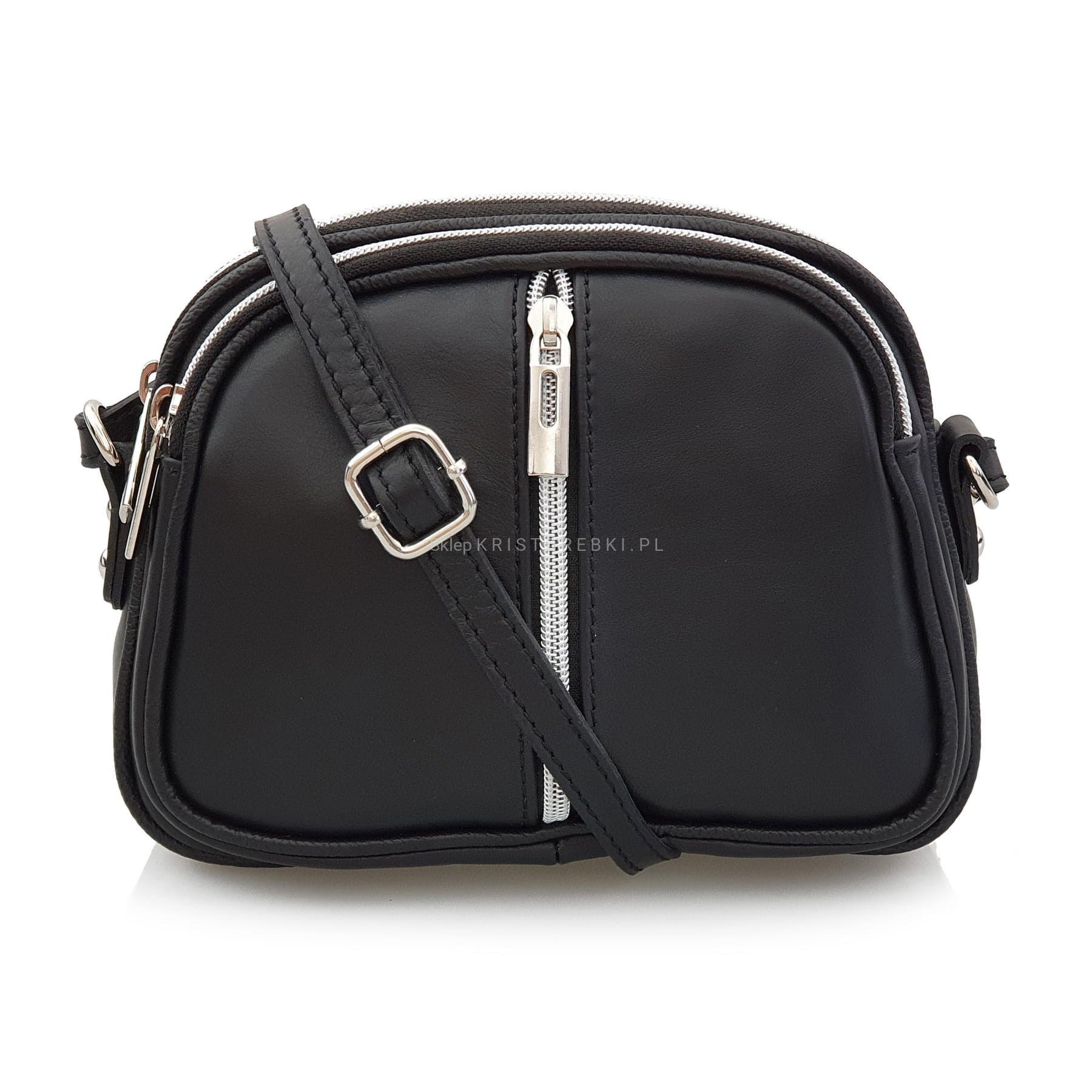 VERA PELLE torebka damska skórzana listonoszka 3 komorowa z paskiem na ramię V463 czarna