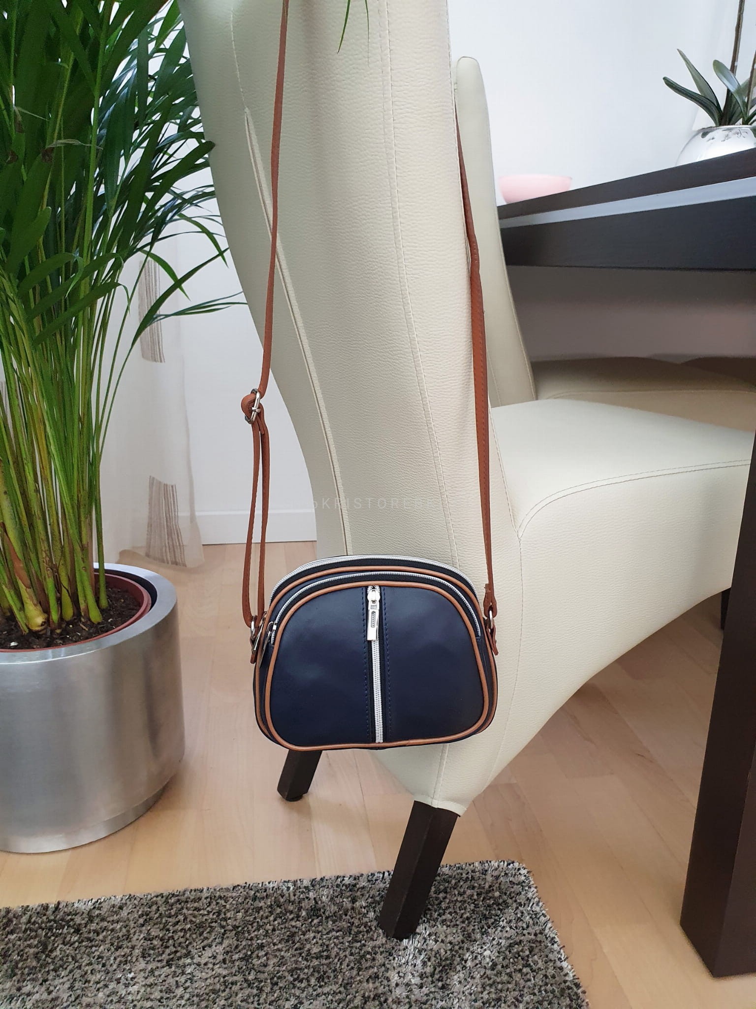 Włoska skórzana torebka, listonoszka damska znanej marki VERA PELLE ITALY w kolorze GRANATOWYM + CAMEL. Wykonana została z mięciutkiej w dotyku i pachnącej, najwyższej jakości skóry naturalnej. Wykonanie torebki jest bardzo staranne z dbałością o wszystkie szczegóły a szwy proste i precyzyjne. Torebka mimo swoich rozmiarów jest bardzo praktyczna i pojemna. Posiada aż trzy niezależne, zamykane na suwak komory a środek wykończony jest solidną podszewką. Z przodu znajdziesz dodatkową funkcjonalną kieszonkę zamykaną na suwak. Torebka posiada długi i regulowany pasek o długości 130 cm, dzięki czemu bez trudu dopasujesz ją do swojego wzrostu i preferencji. Dzięki klasycznemu wyglądowi będzie pasowała do niemal każdej codziennej jak i wizytowej stylizacji. Sprawdzi się również jako wyszukany prezent dla najbliższej Ci osoby.