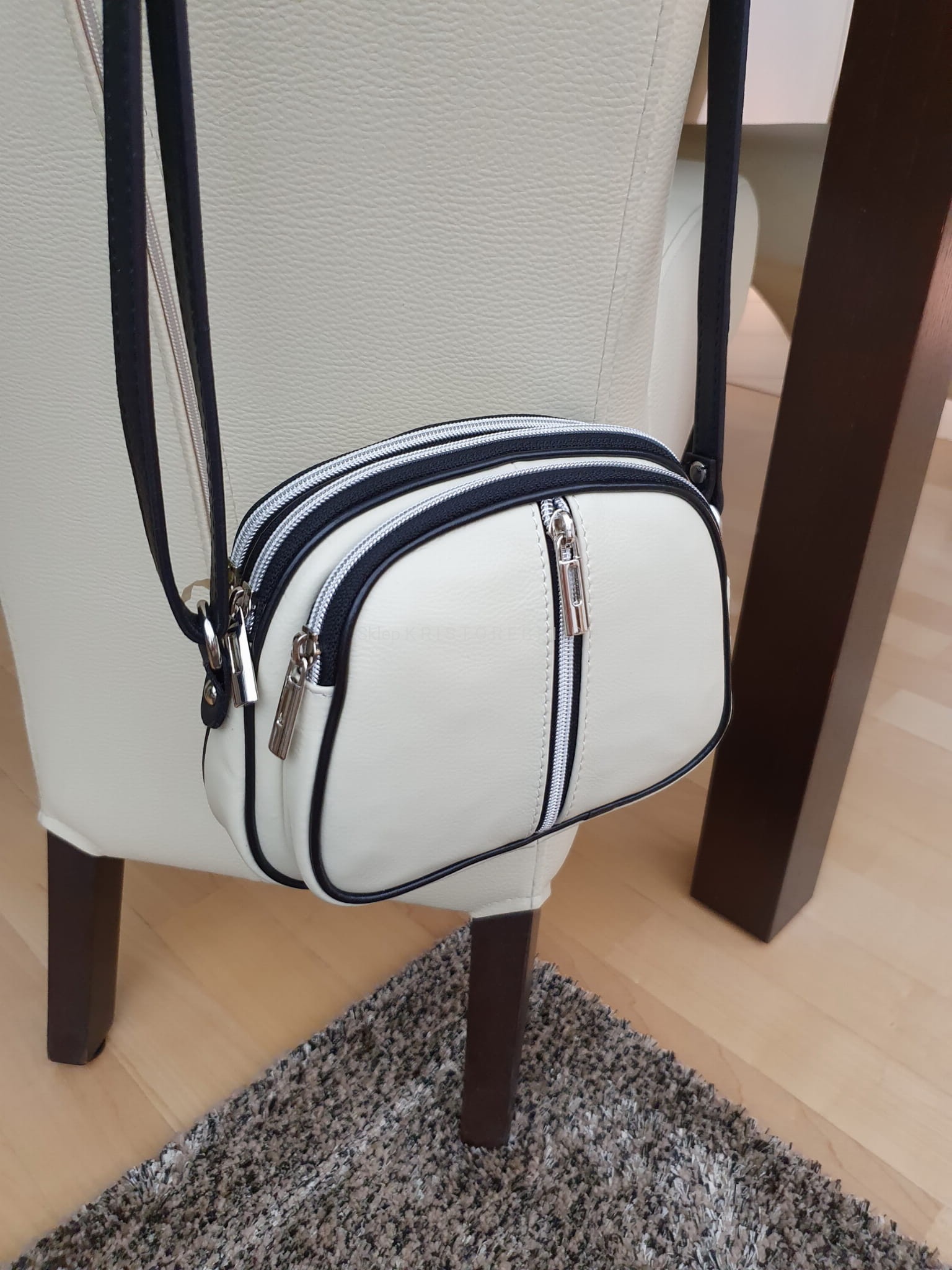 Włoska skórzana torebka, listonoszka damska znanej marki VERA PELLE ITALY w kolorze KREMOWYM. Wykonana została z mięciutkiej w dotyku i pachnącej, najwyższej jakości skóry naturalnej. Wykonanie torebki jest bardzo staranne z dbałością o wszystkie szczegóły a szwy proste i precyzyjne. Torebka mimo swoich rozmiarów jest bardzo praktyczna i pojemna. Posiada aż trzy niezależne, zamykane na suwak komory a środek wykończony jest solidną podszewką. Z przodu znajdziesz dodatkową funkcjonalną kieszonkę zamykaną na suwak. Torebka posiada długi i regulowany pasek o długości 130 cm, dzięki czemu bez trudu dopasujesz ją do swojego wzrostu i preferencji. Dzięki klasycznemu wyglądowi będzie pasowała do niemal każdej codziennej jak i wizytowej stylizacji. Sprawdzi się również jako wyszukany prezent dla najbliższej Ci osoby.
