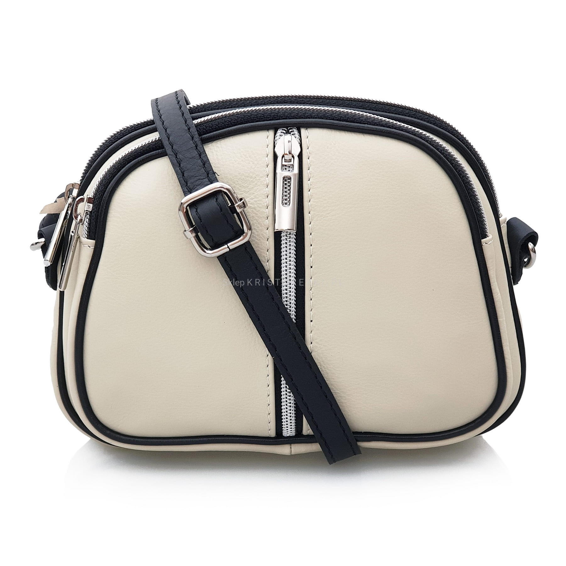 VERA PELLE torebka damska skórzana listonoszka 3 komorowa z paskiem na ramię V463 kremowa
