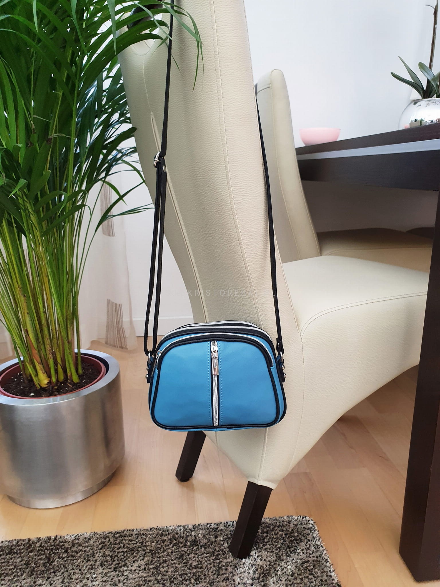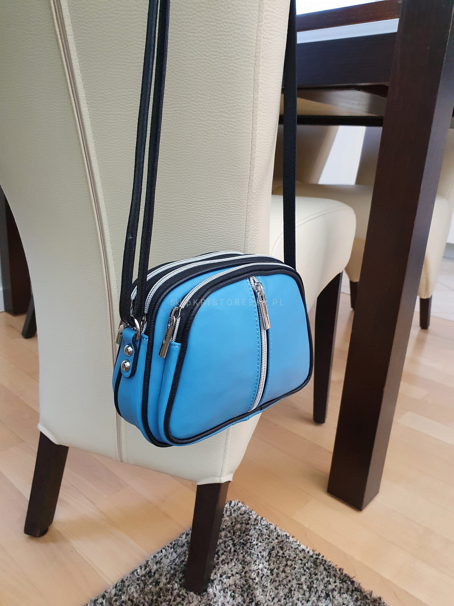 Włoska skórzana torebka, listonoszka damska znanej marki VERA PELLE ITALY w kolorze NIEBIESKIM. Wykonana została z mięciutkiej w dotyku i pachnącej, najwyższej jakości skóry naturalnej. Wykonanie torebki jest bardzo staranne z dbałością o wszystkie szczegóły a szwy proste i precyzyjne. Torebka mimo swoich rozmiarów jest bardzo praktyczna i pojemna. Posiada aż trzy niezależne, zamykane na suwak komory a środek wykończony jest solidną podszewką. Z przodu znajdziesz dodatkową funkcjonalną kieszonkę zamykaną na suwak. Torebka posiada długi i regulowany pasek o długości 130 cm, dzięki czemu bez trudu dopasujesz ją do swojego wzrostu i preferencji. Dzięki klasycznemu wyglądowi będzie pasowała do niemal każdej codziennej jak i wizytowej stylizacji. Sprawdzi się również jako wyszukany prezent dla najbliższej Ci osoby.