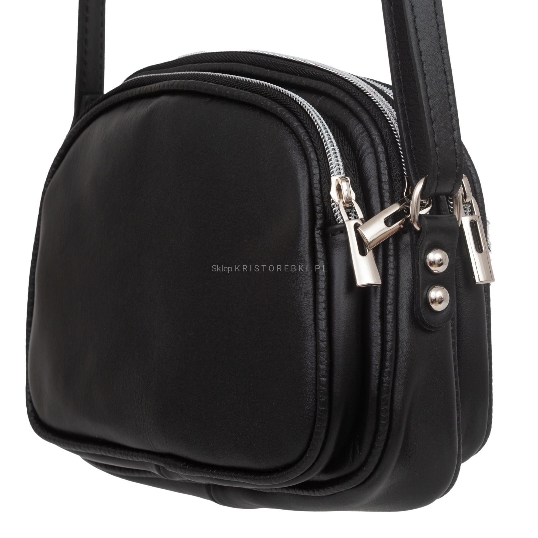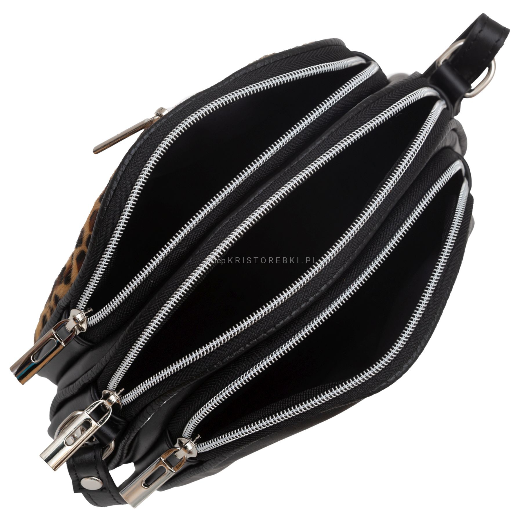 VERA PELLE torebka damska skórzana listonoszka 3 komorowa z paskiem na ramię V463 w panterkę