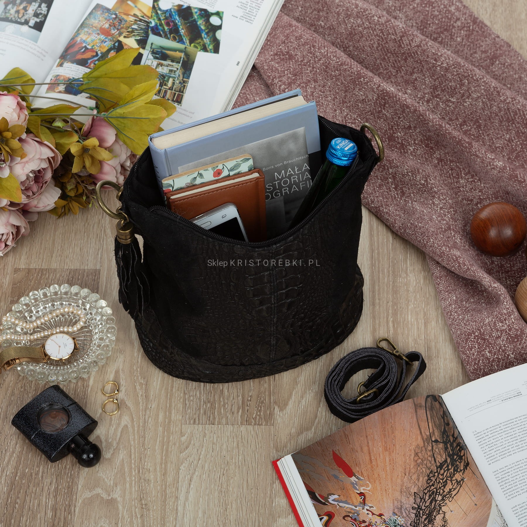 | Dodatkowe informacje | z tyłu kieszeń zamykana na suwak + z boku ozdobny frędzelek |