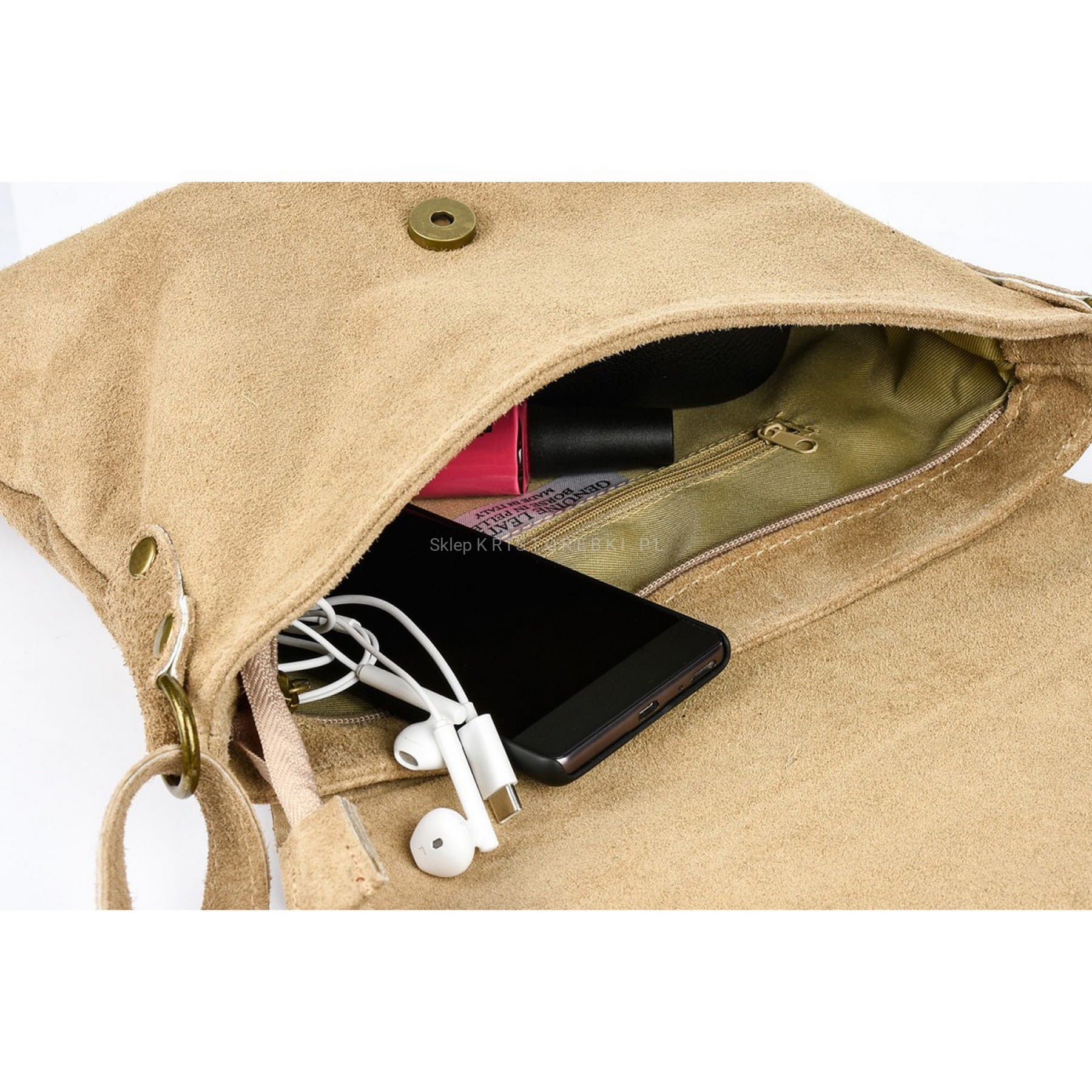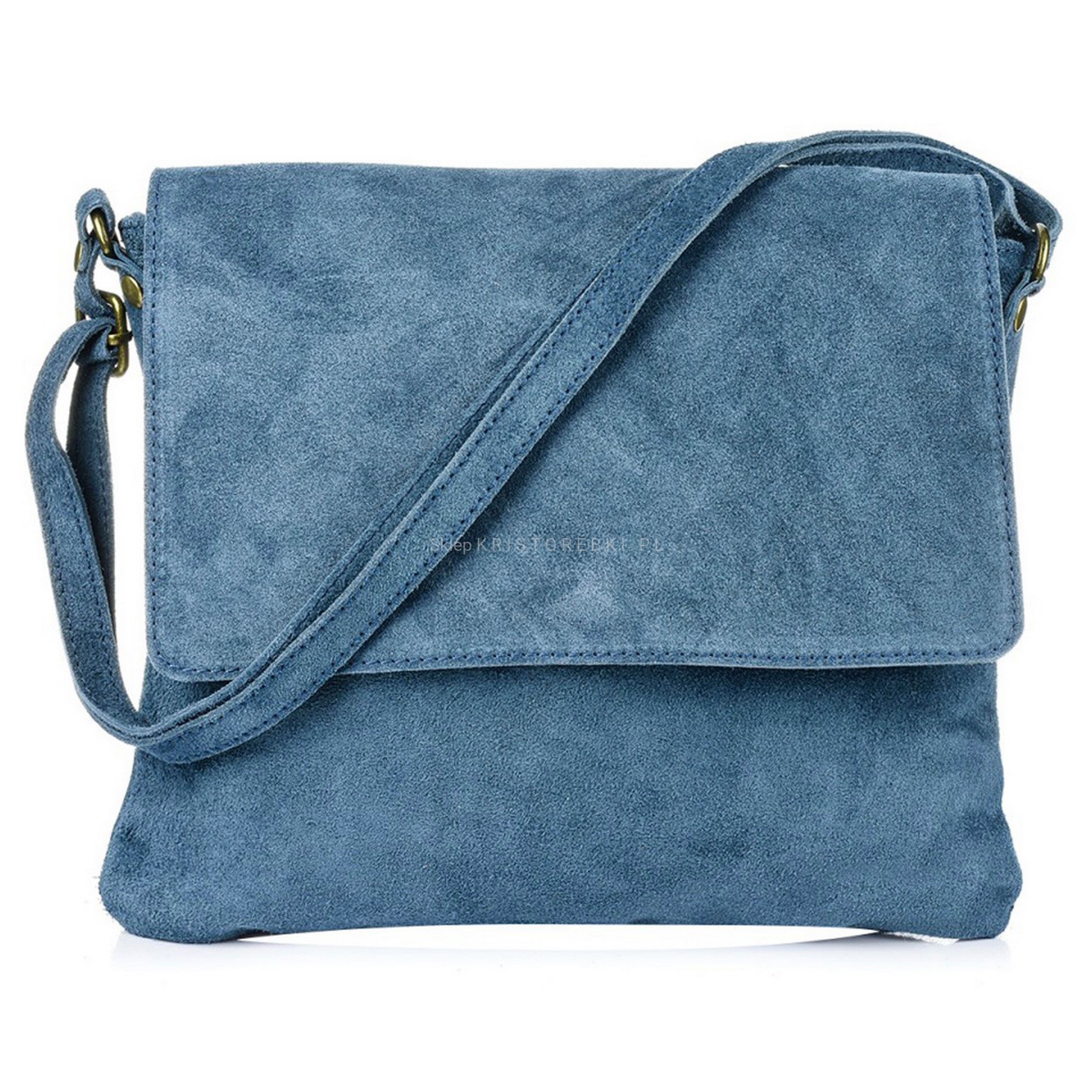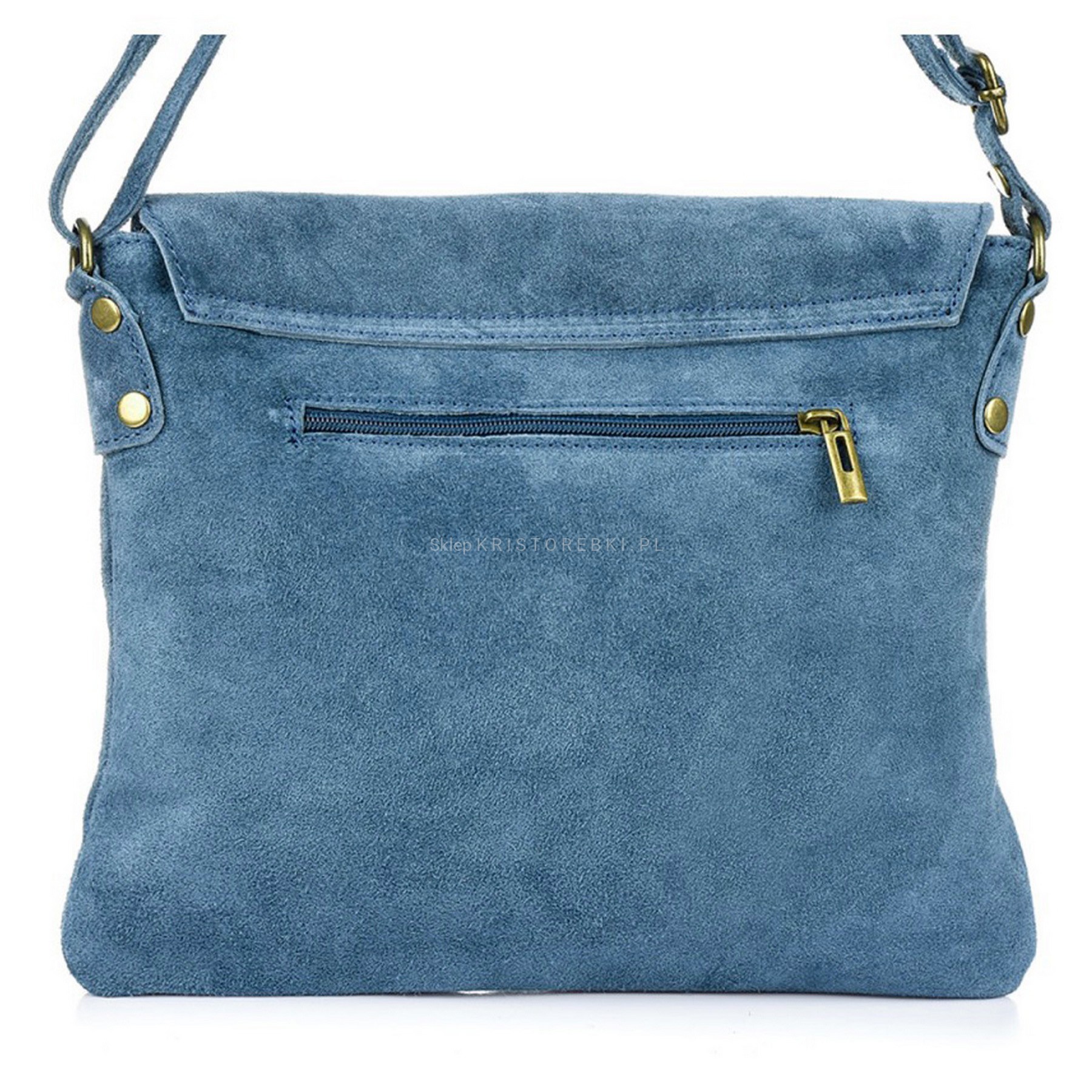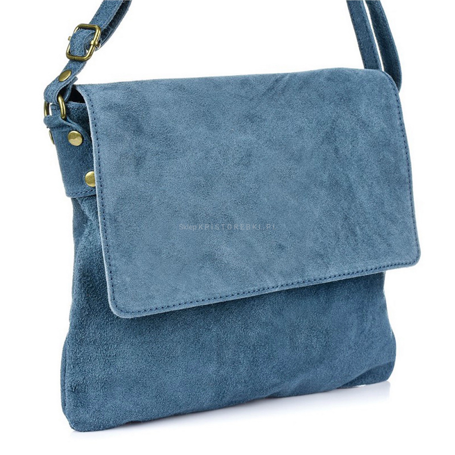 VERA PELLE torebka damska zamszowa listonoszka z klapą i paskiem V480 ciemna jeansowa