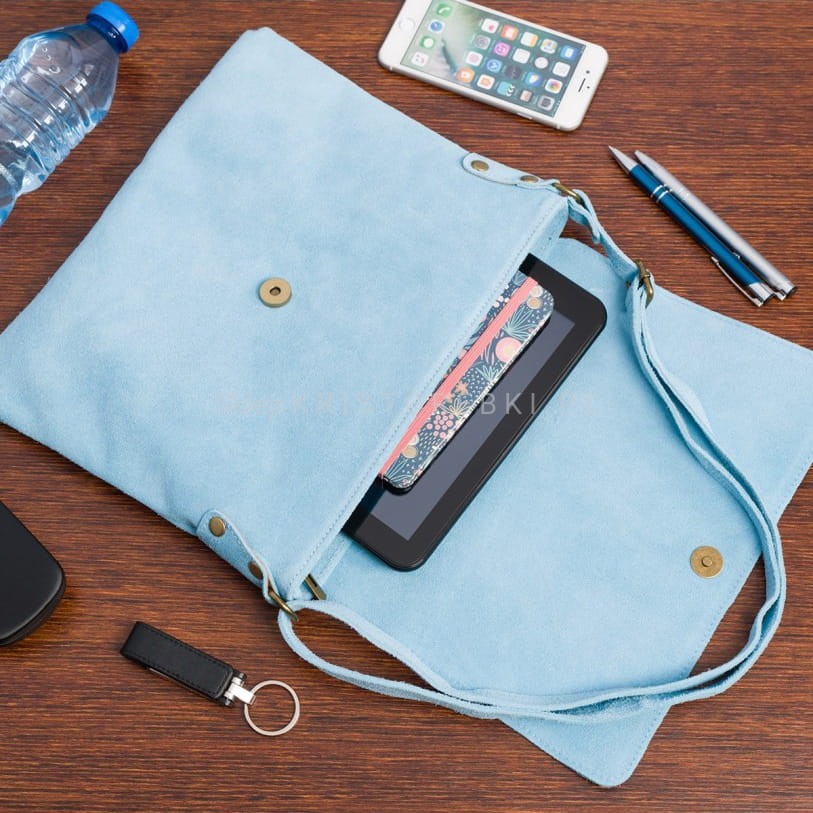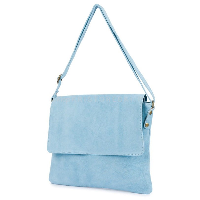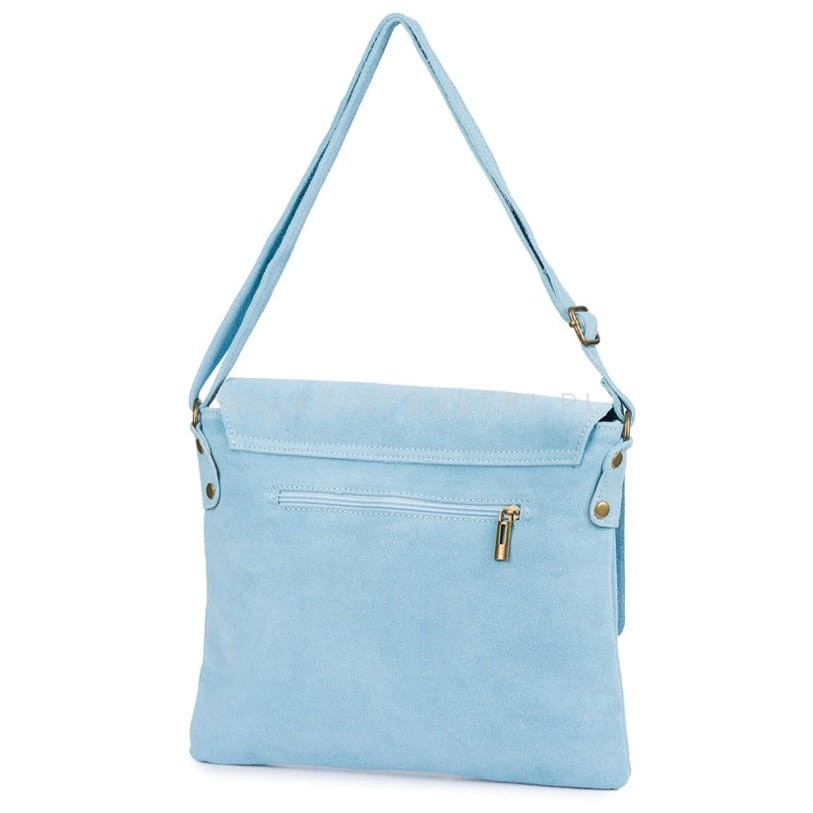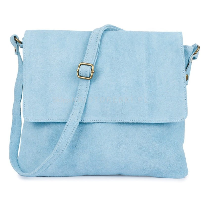 VERA PELLE torebka damska zamszowa listonoszka z klapą i paskiem V480 niebieska