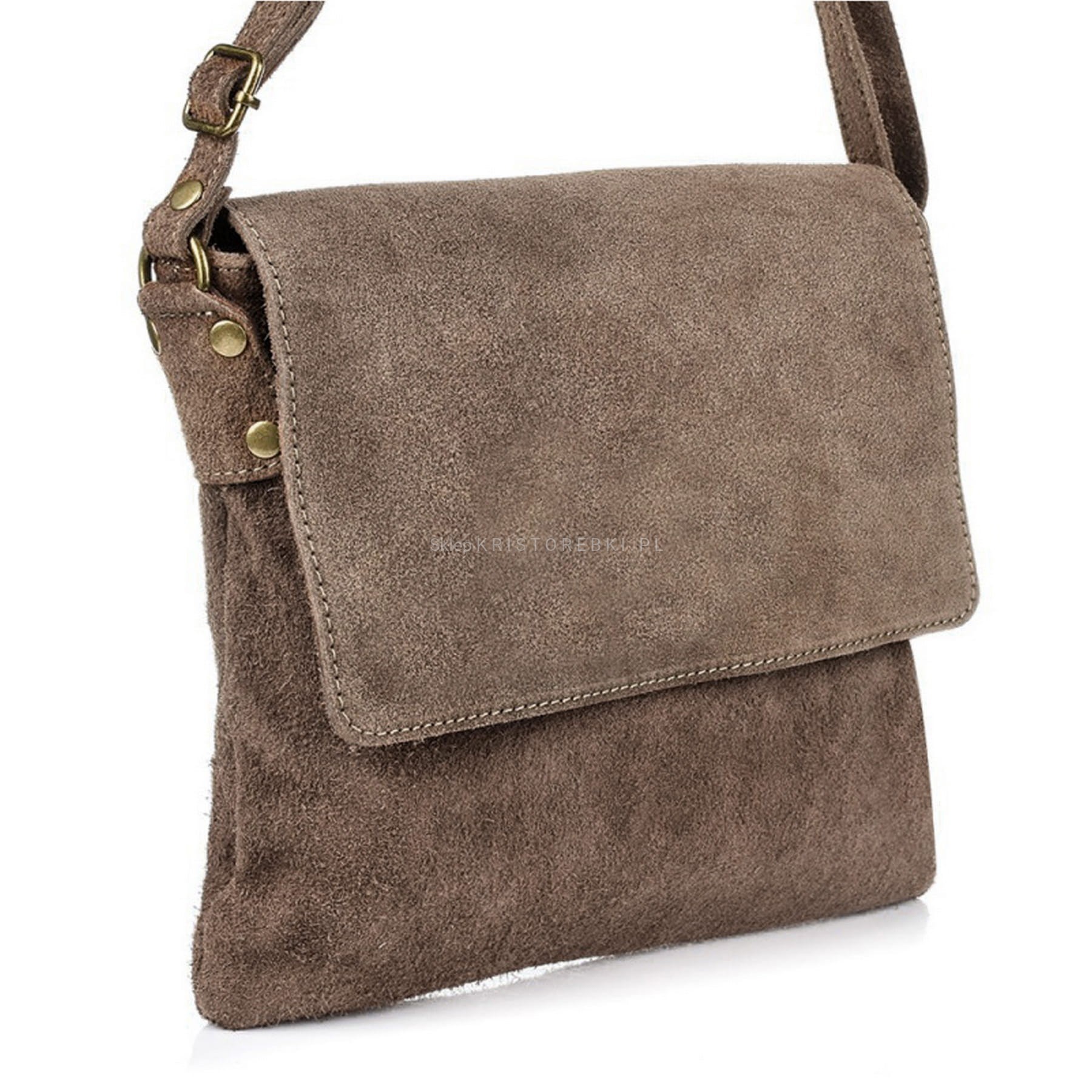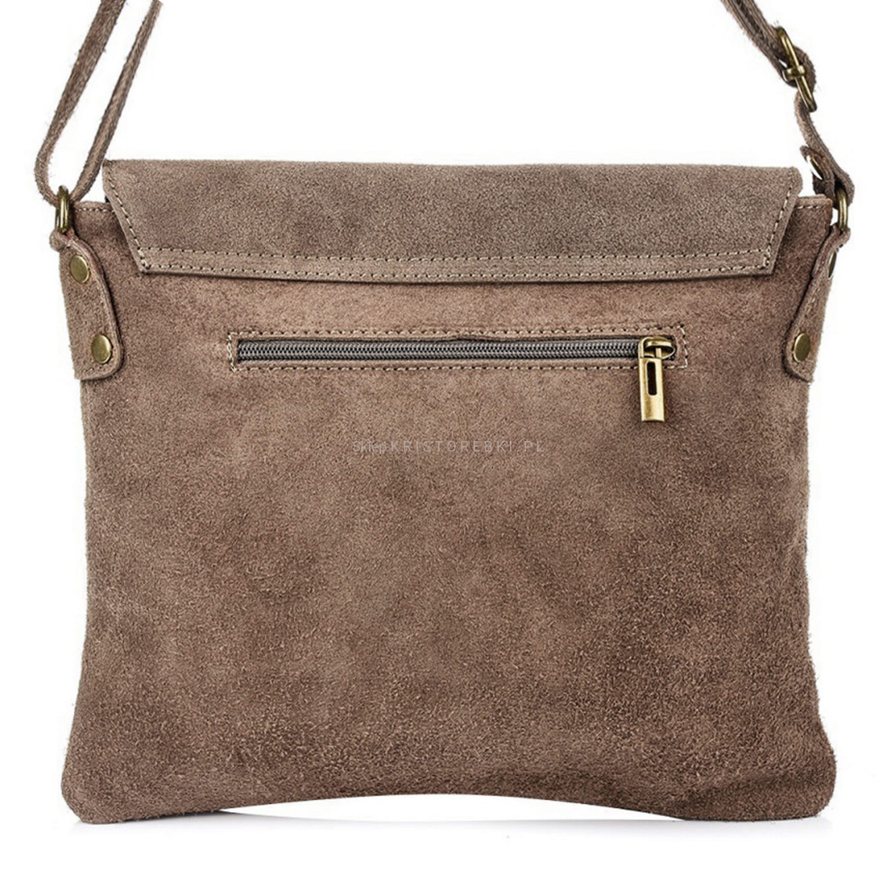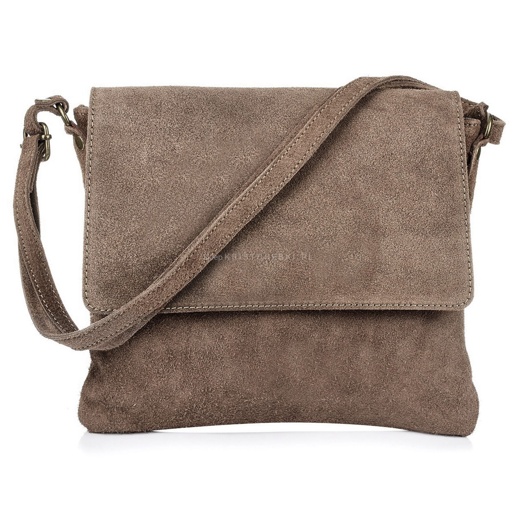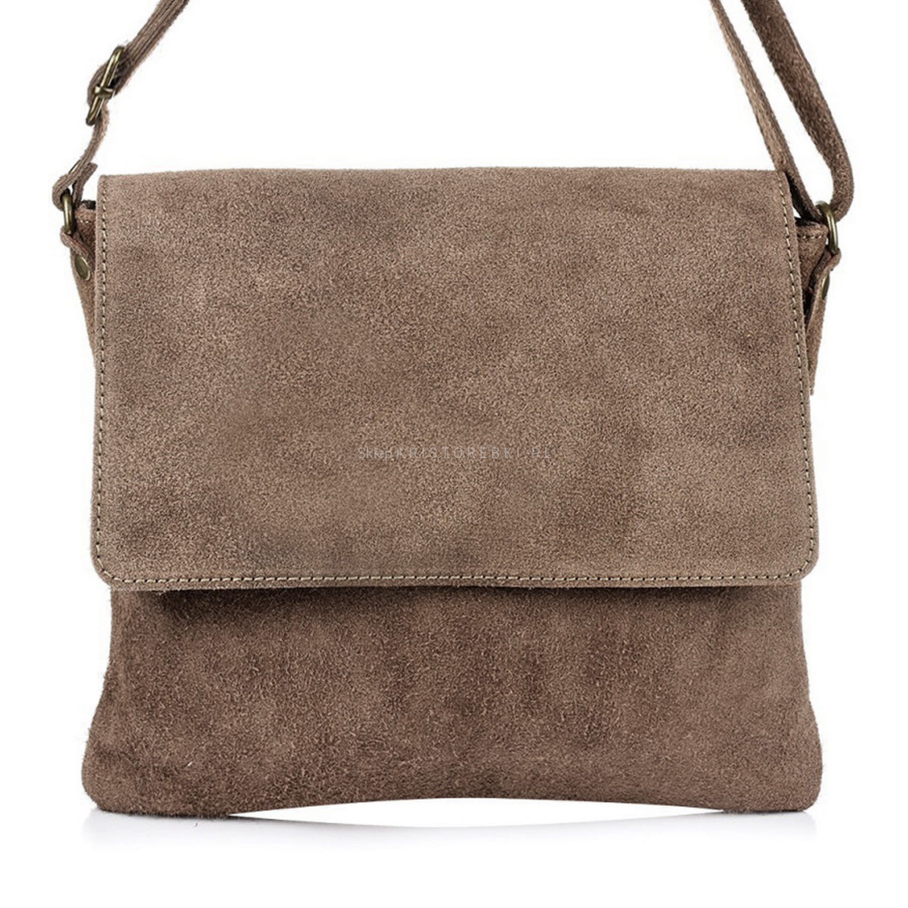 VERA PELLE torebka damska zamszowa listonoszka z klapą i paskiem V480 taupe