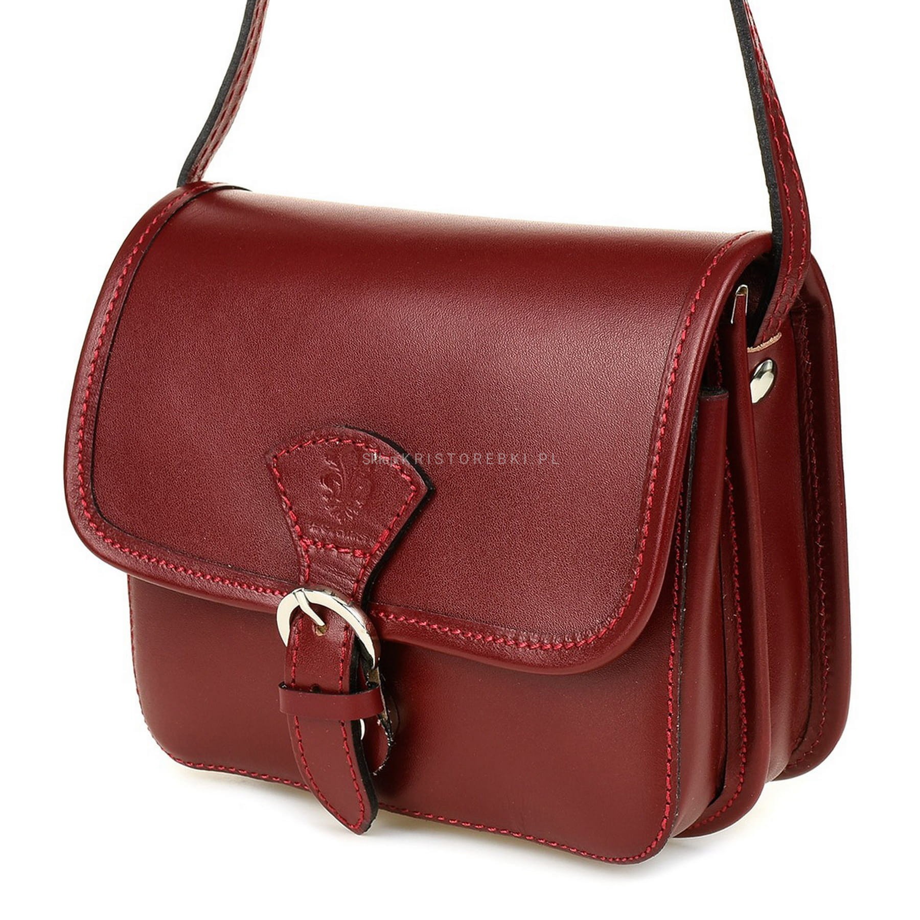 VERA PELLE torebka damska skórzana listonoszka z paskiem na ramię V482 bordowa