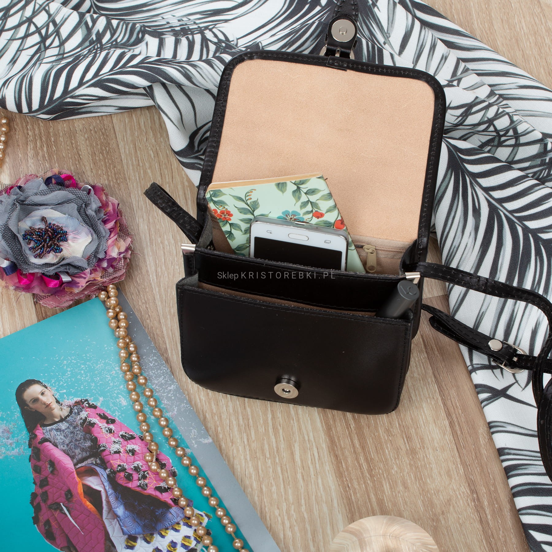VERA PELLE torebka damska skórzana listonoszka z paskiem na ramię V482 czarna