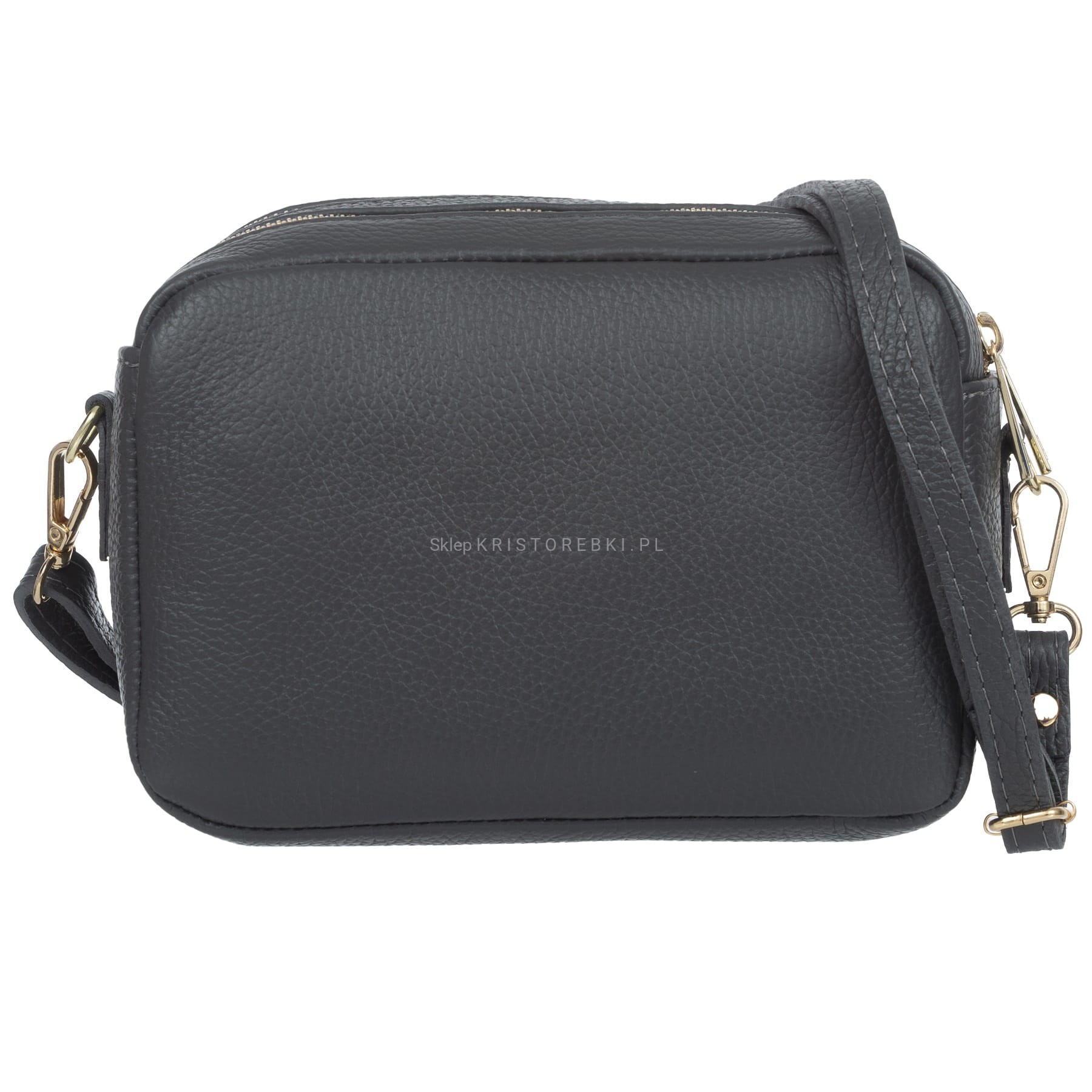 VERA PELLE torebka damska skórzana listonoszka z paskiem na ramię V486 grafitowa