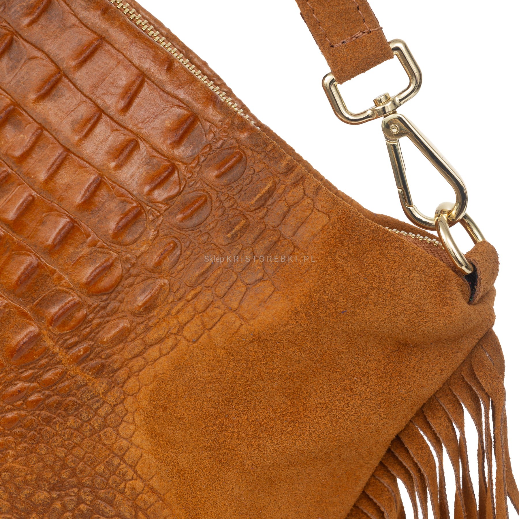 Włoska listonoszka damska znanej i cenionej na rynku europejskim marki VERA PELLE ITALY w kolorze GRANATOWYM. Listonoszka wykonana została z najwyższej jakości, miękkiej w dotyku i pachnącej włoskiej skóry zamszowej z ozdobnym tłoczeniem. Została ręcznie uszyta bardzo starannie z dbałością o najmniejsze szczegóły. Po bokach posiada ozdobne frędzle nadające jej styl boho. Torebka posiada okucia w kolorze złotym oraz dołączony jest do niej krótki i odpinany pasek o długości 40 cm, dzięki czemu możesz ją wygodnie nosić w ręku. Dodatkowo do torebki dołączony jest również długi, odpinany i regulowany pasek o długości maksymalnej 115 cm, dzięki czemu możesz ją nosić również na ramieniu wedle własnych preferencji. Główna komora torebki zamykana jest na suwak a środek wykończony jest praktyczną podszewką. W środku na bocznej ściance dodatkowo znajdziesz praktyczną kieszonkę zamykaną na suwak, dzięki czemu bez trudu oddzielisz np. telefon od kluczy. Jak na swój wymiar jest pojemna, dzięki czemu bez trudu zmieścisz telefon, portfel, klucze i nieduże kosmetyki. Jest lekka, praktyczna i będzie pasowała do niemal każdej codziennej i wizytowej stylizacji.