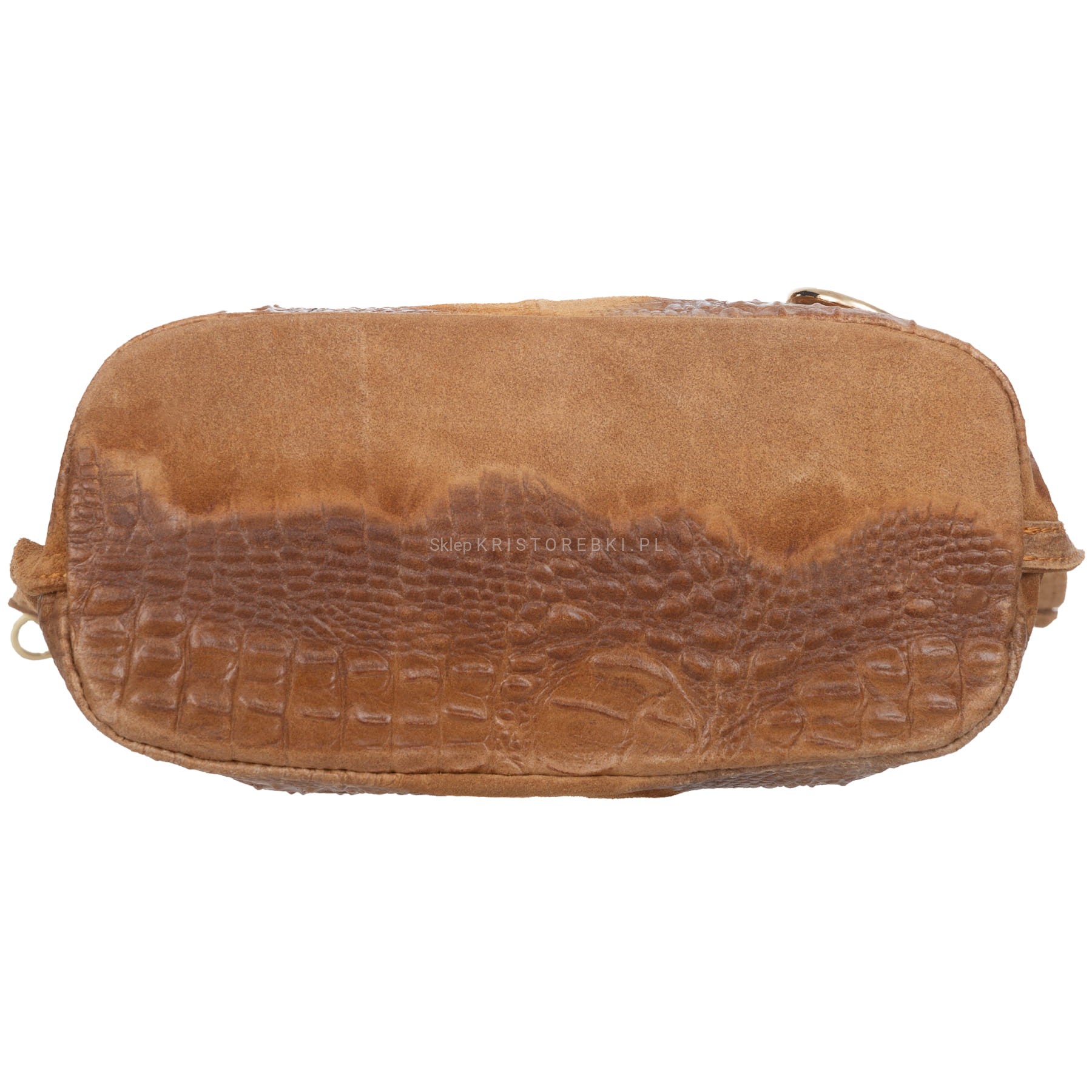 VERA PELLE torebka damska zamszowa worek z kłódeczką kroko V493 camel