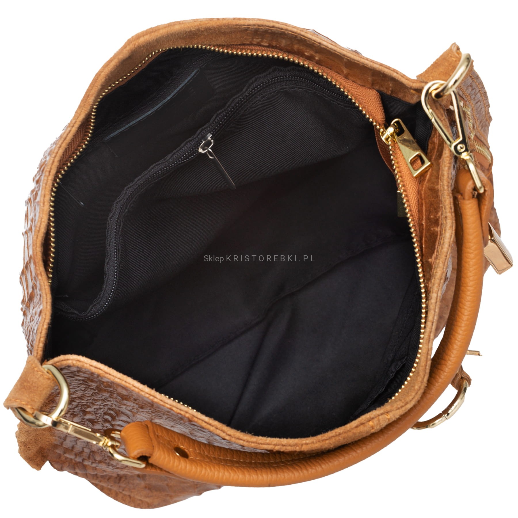 | Cechy wnętrza | w środku podszewka + przegroda zamykana na suwak + kieszonka na suwak + dwie otwarte kieszonki na telefon i dokumenty |