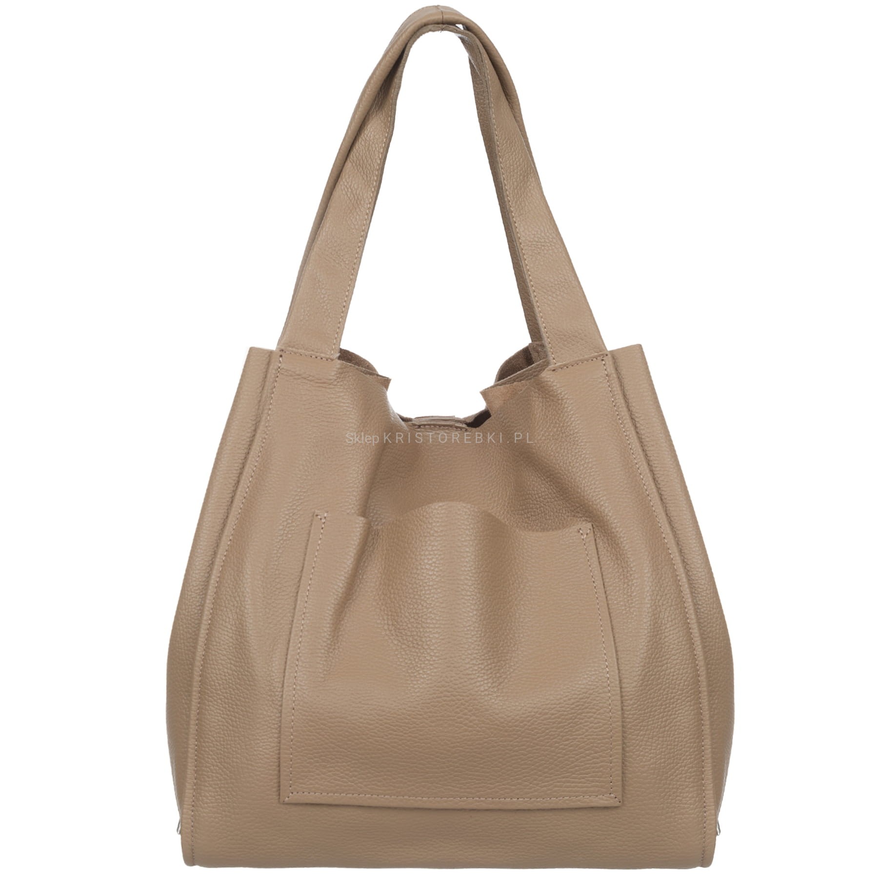 VERA PELLE torebka damska skórzana shopper z saszetką na ramię V497 beżowa