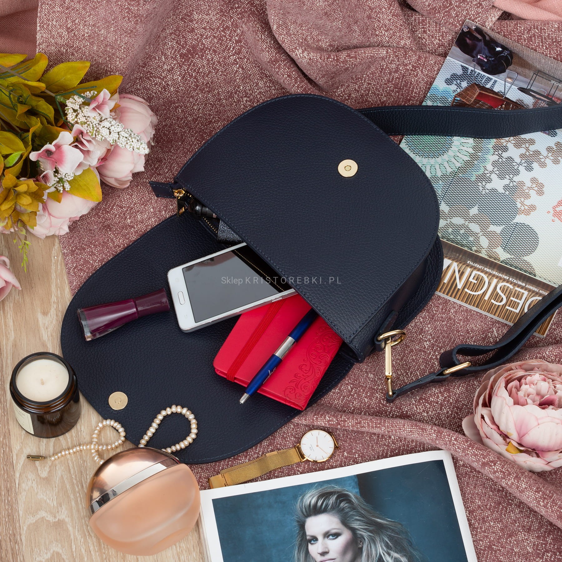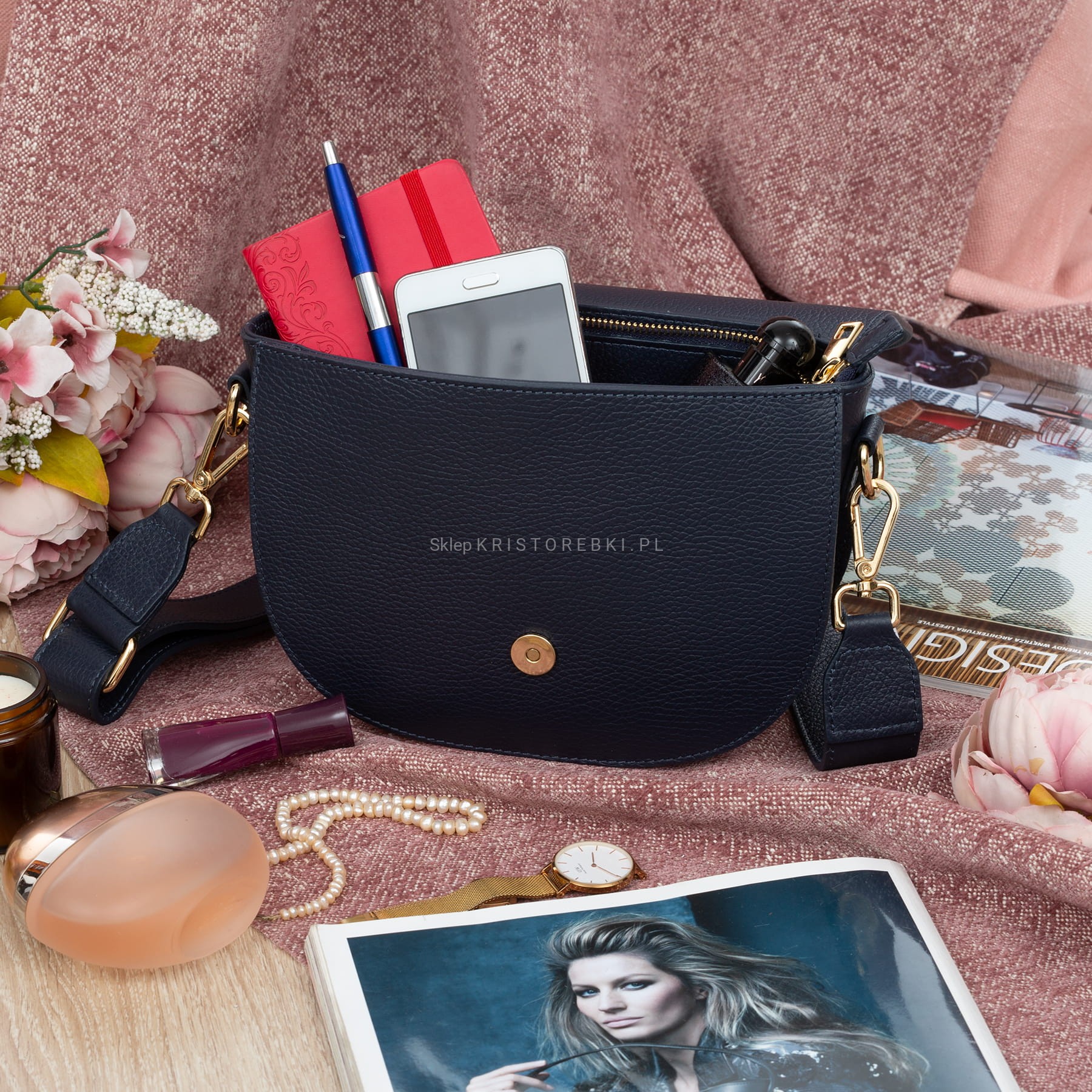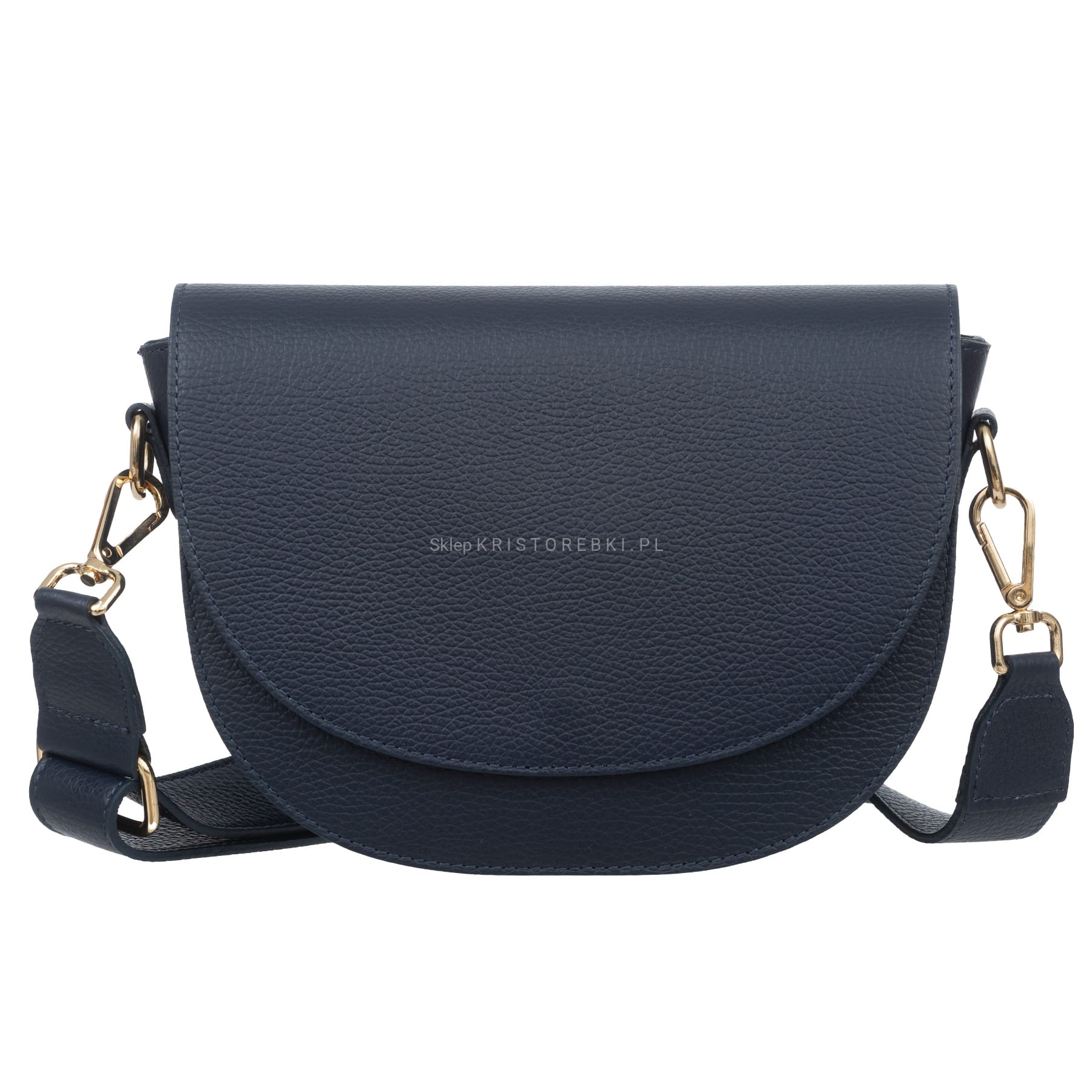 VERA PELLE torebka damska skórzana listonoszka z paskiem na ramię V504 granatowa
