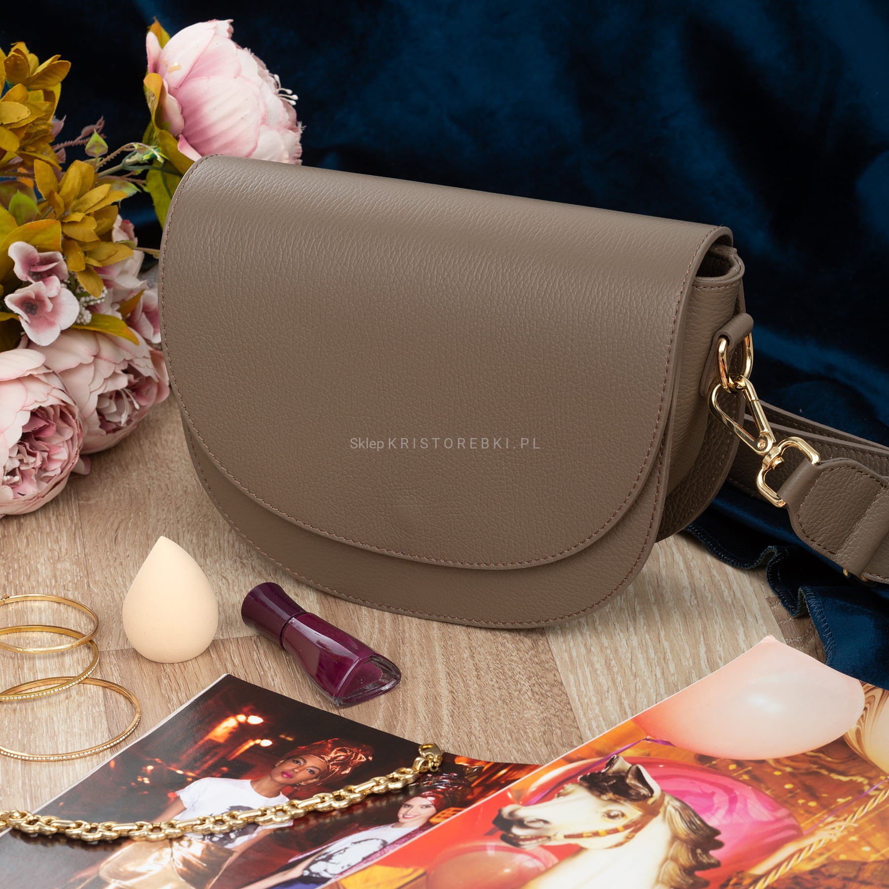 VERA PELLE torebka damska skórzana listonoszka z paskiem na ramię V504 taupe