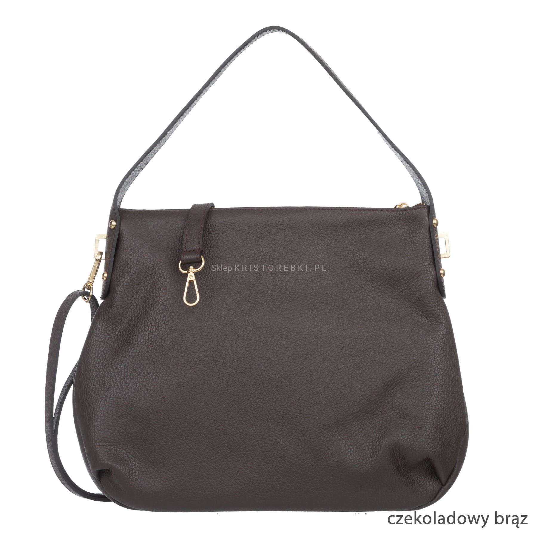 Włoska skórzana torebka typu worek marki VERA PELLE ITALY dostępna w wielu modnych KOLORACH. Wykonana jest bardzo starannie z najwyższej jakości, przyjemnie pachnącej i miłej w dotyku skóry naturalnej. Torba posiada długi uchwyt, dzięki czemu można ją wygodnie nosić w ręku. W zestawie posiada dodatkowo długi, odpinany i regulowany pasek, dzięki czemu można ją wygodnie nosić również na ramieniu i dopasować do własnych preferencji. Torebka zamykana jest na suwak i posiada złote okucia. Jednokomorowy środek wykończony jest podszewką oraz posiada zamykaną kieszonkę na suwak oraz dodatkowe dwie otwarte kieszonki na telefon lub dokumenty. Jest bardzo pojemna i będzie bardzo wygodna w codziennym użytkowaniu. Będzie również pasowała do niemal każdej codziennej stylizacji.