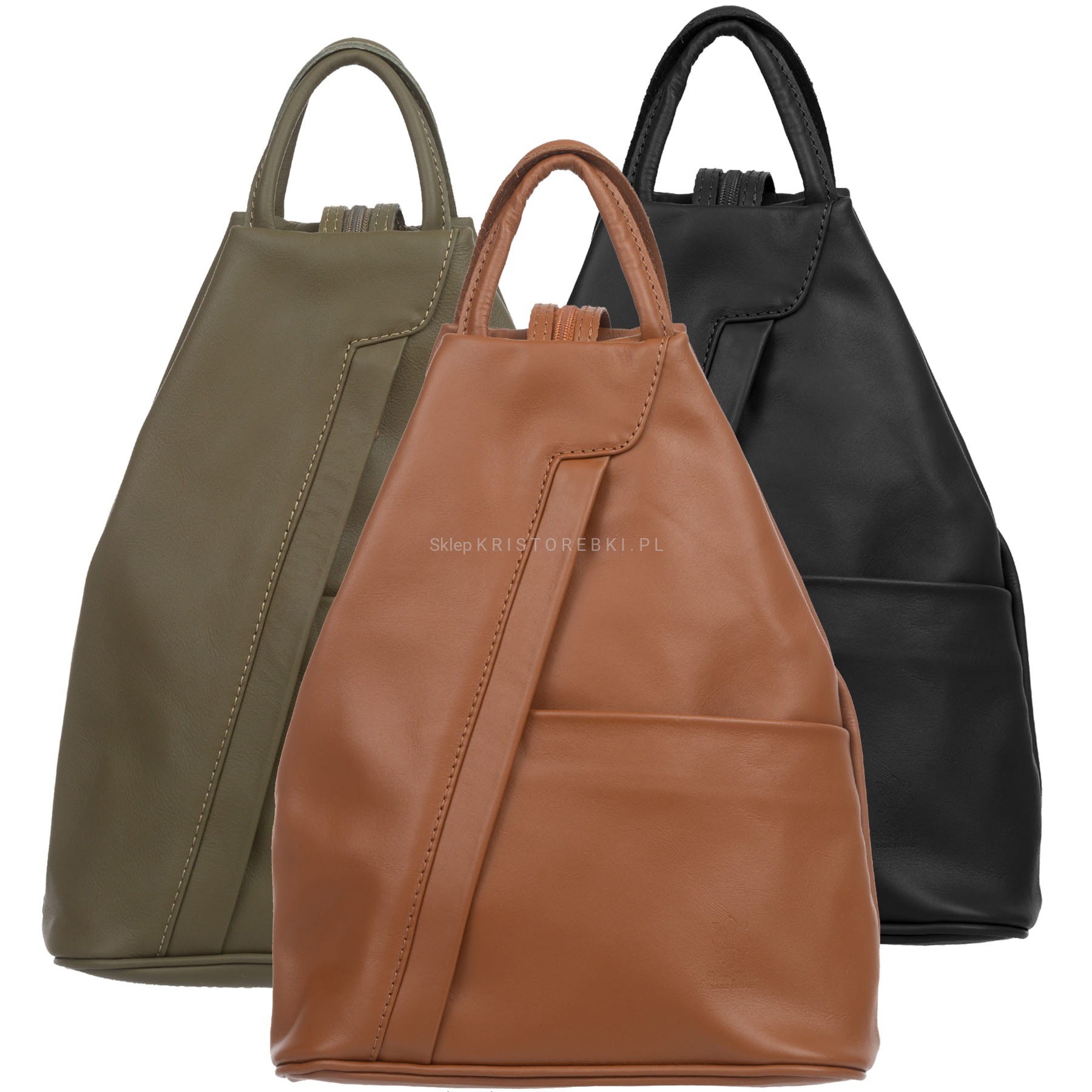 VERA PELLE plecak damski skórzany licowy elegancki trójkątny V520 kolory