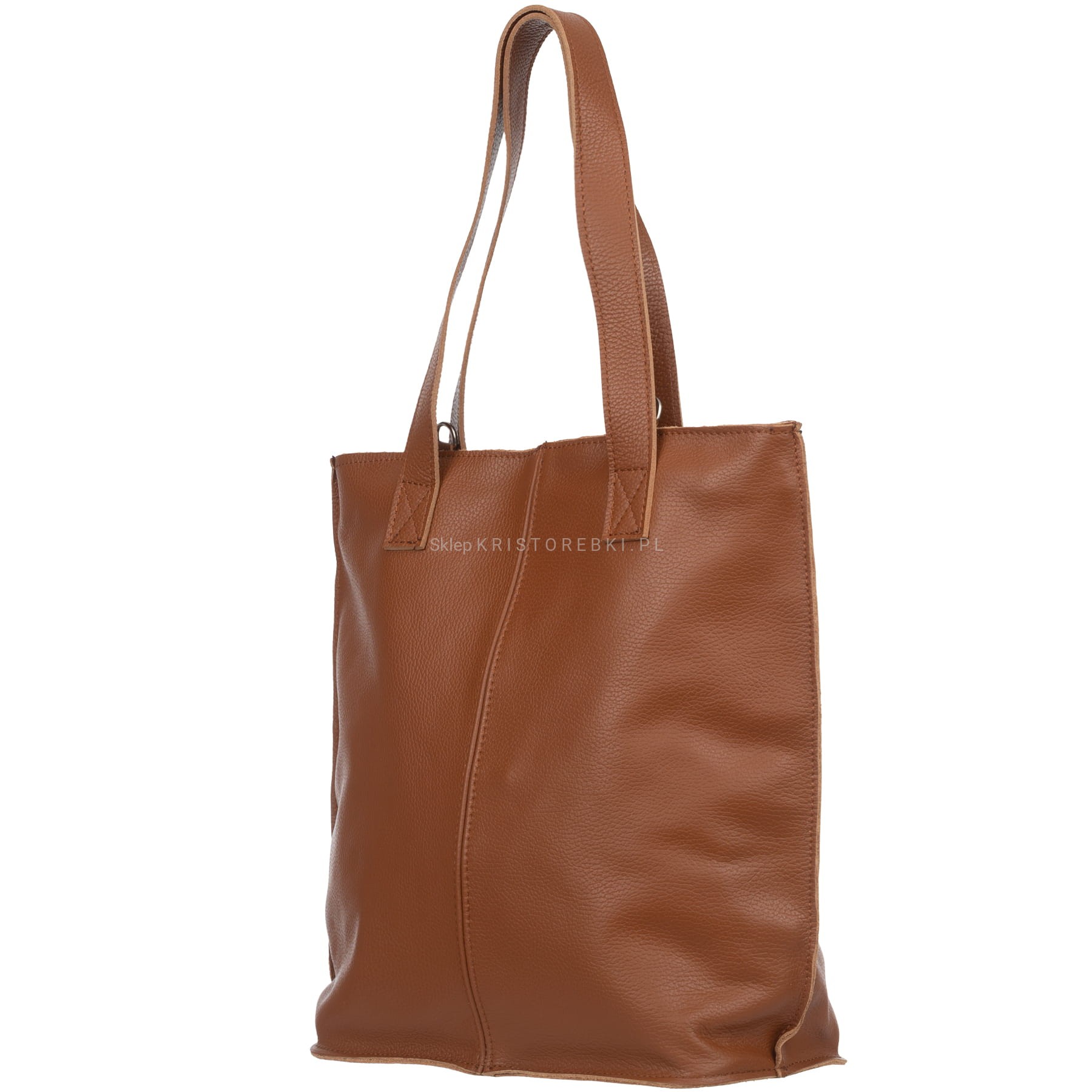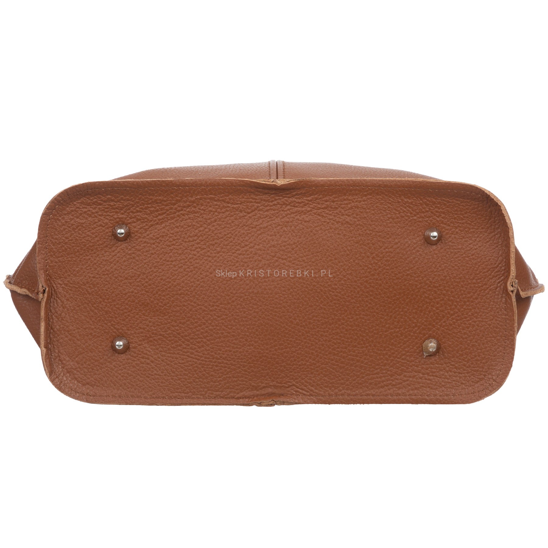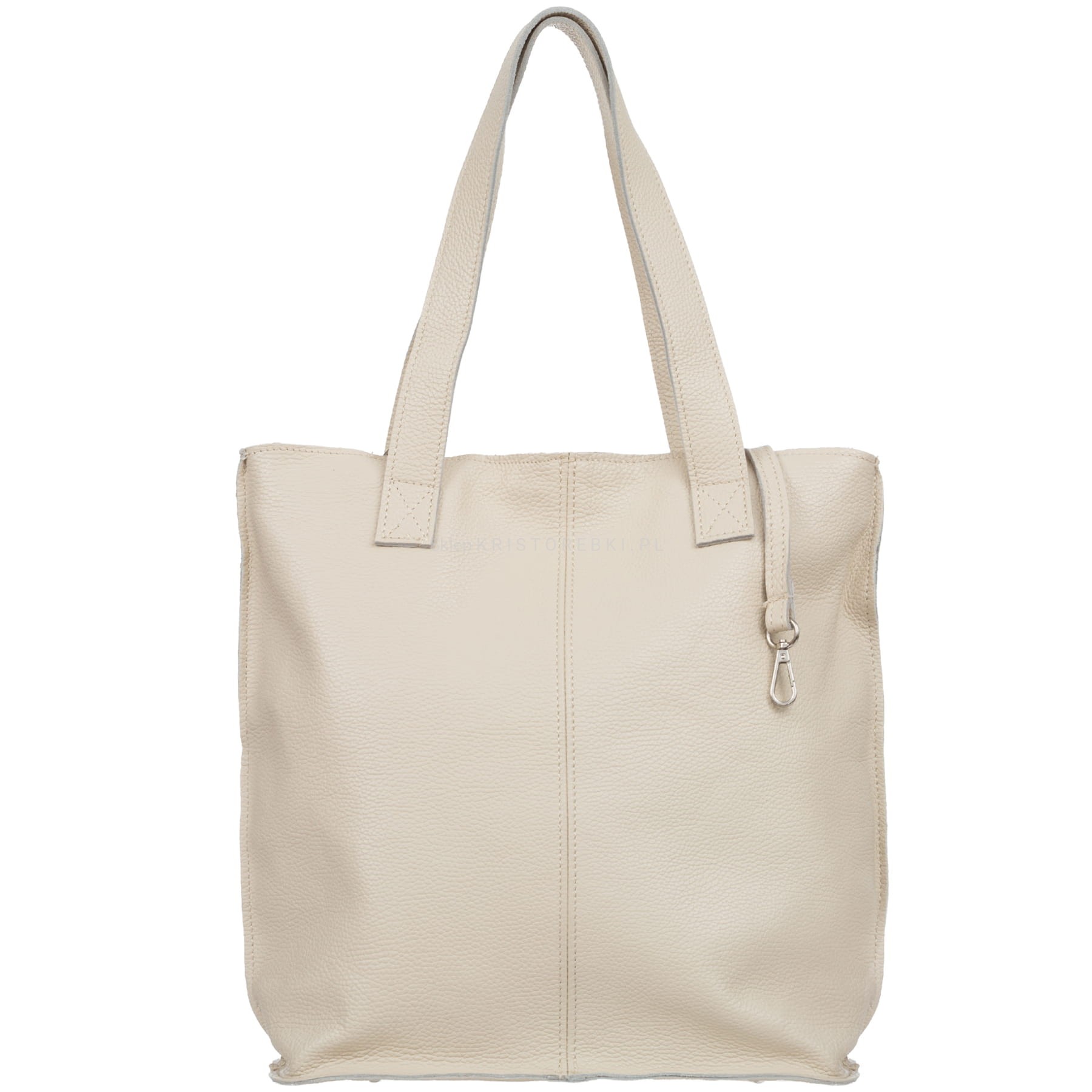 VERA PELLE torebka damska skórzana shopper z długimi rączkami i paskiem V523 kremowa