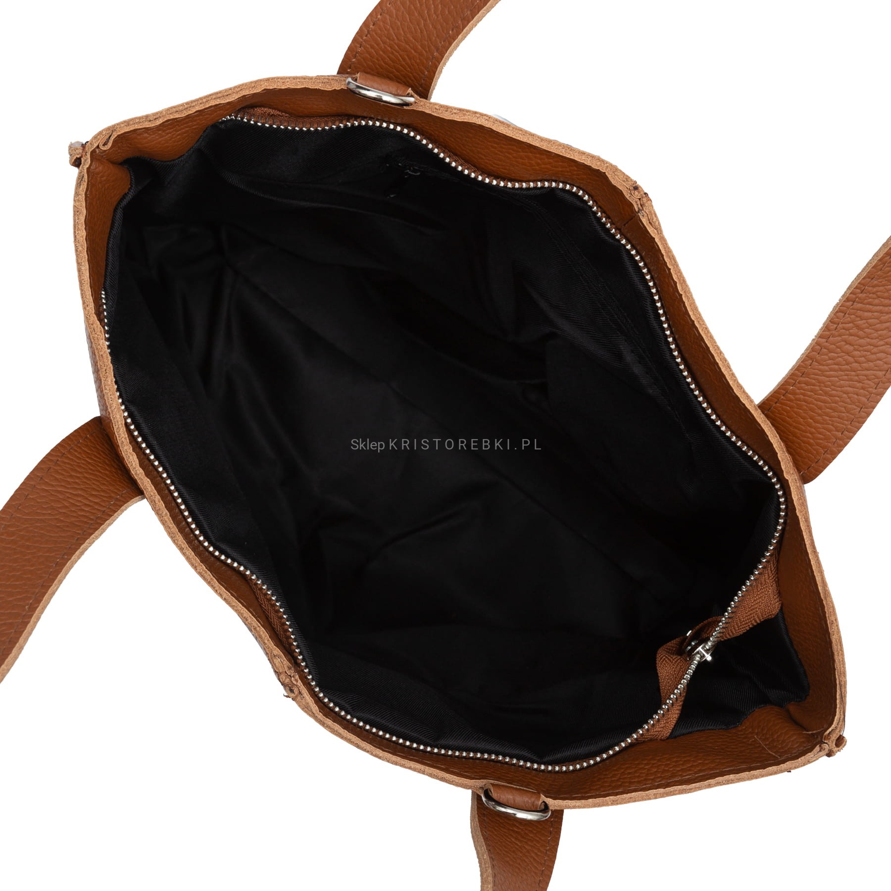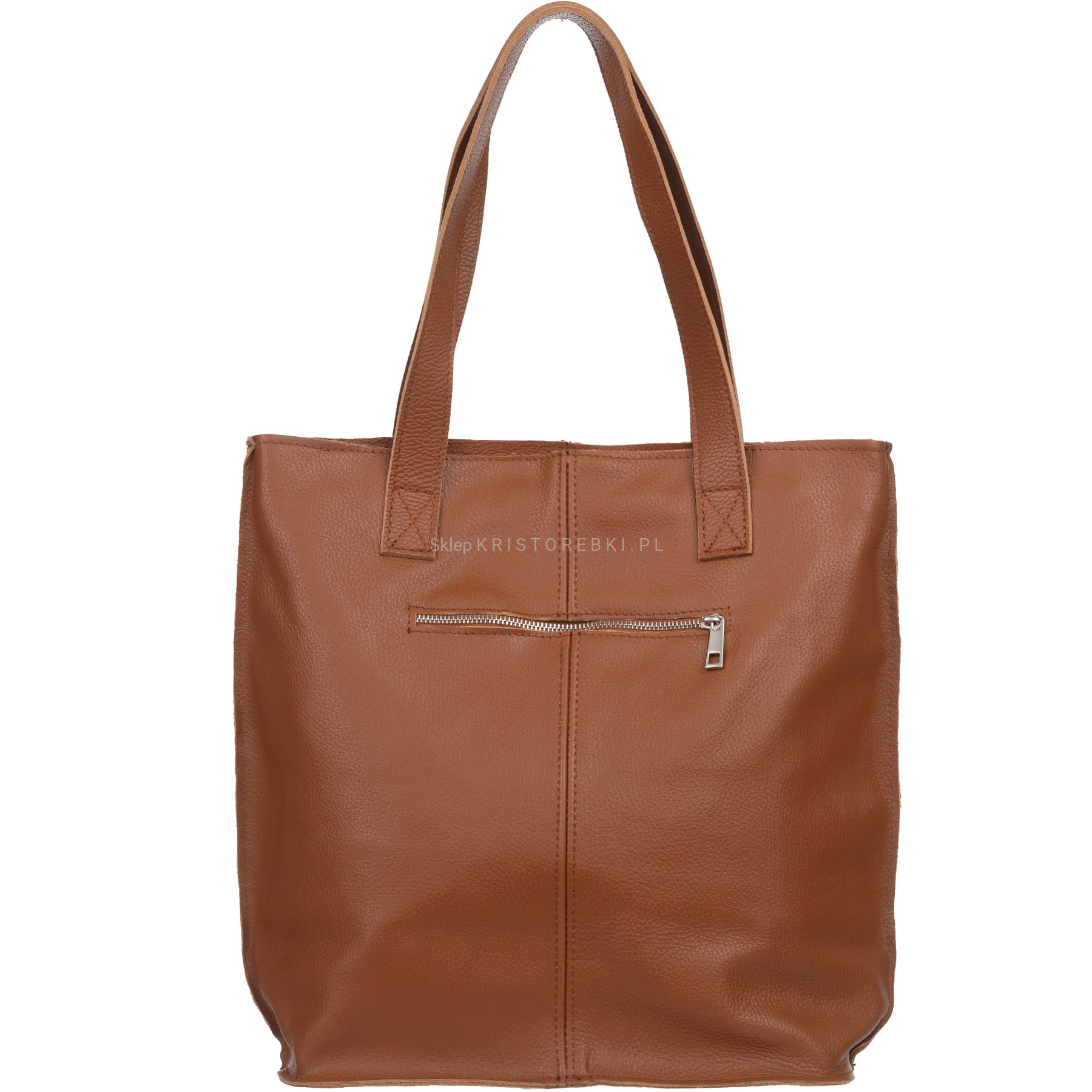 Duża torebka damska typu shopper znanej i cenionej na rynku europejskim marki VERA PELLE ITALY w kolorze KREMOWYM. Uszyta została bardzo starannie z najwyższej jakości włoskiej skóry naturalnej z widoczną fakturą. Torebka posiada długie rączki, dzięki czemu można ją wygodnie nosić w ręku i na ramieniu oraz z łatwością dopasować do własnych preferencji. Dodatkowo do torebki dołączony został długi, odpinany i regulowany pasek, dzięki czemu można ją nosić na wiele sposobów. Torebka posiada okucia w kolorze srebrnym i zamykana jest na solidny suwak. Jednokomorowy środek wykończony jest podszewką. Dodatkowo w środku znajdziesz praktyczną dużą kieszonkę zamykaną na suwak. Z tyłu torebki znajduje się kolejna duża kieszeń zamykana na suwak a spód chronią przed zarysowaniami nóżki ochronne. Torebka jest bardzo pojemna i praktyczna. Będzie pasować do większości codziennych stylizacji.