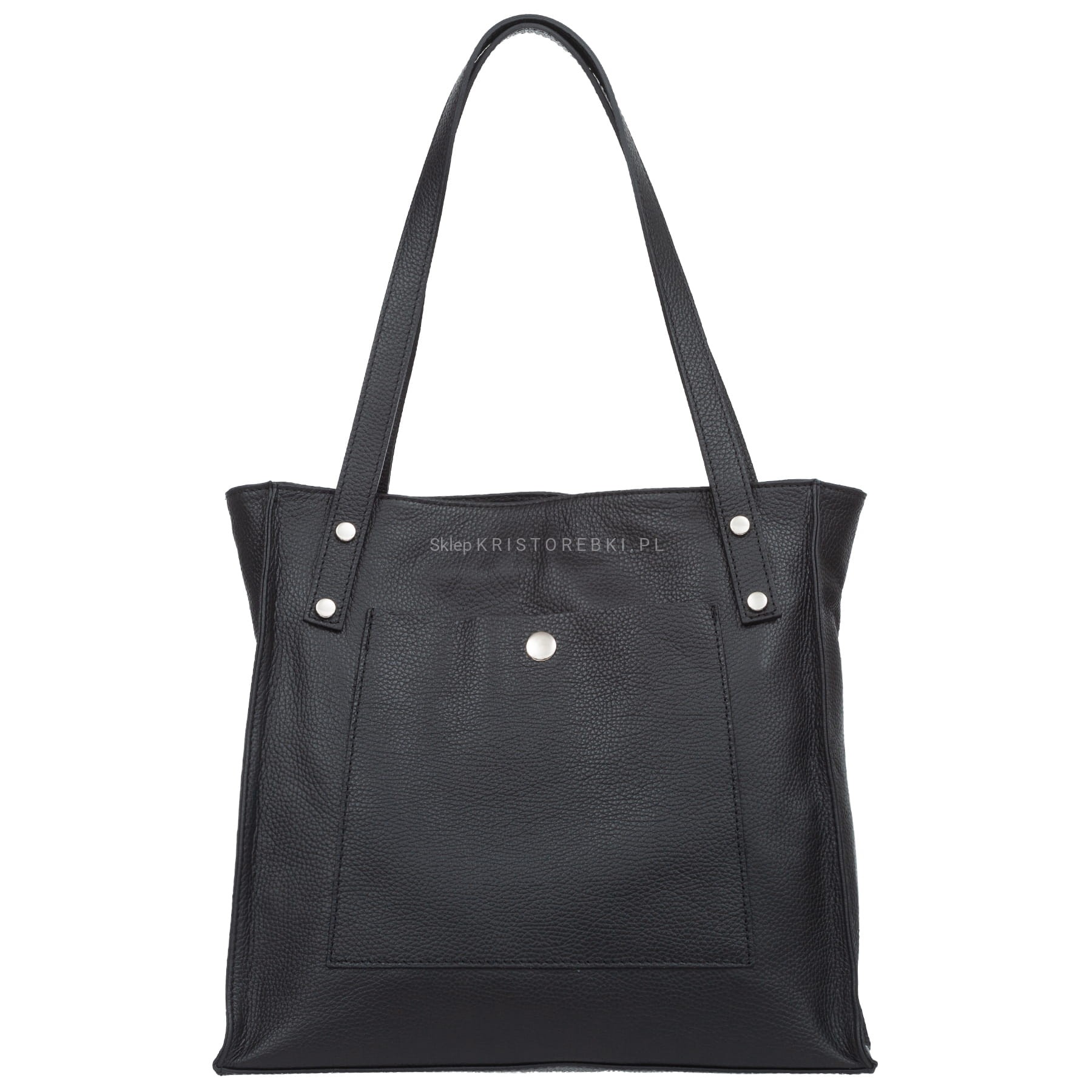 VERA PELLE torebka damska skórzana shopper z długimi rączkami na ramię V527 czarna