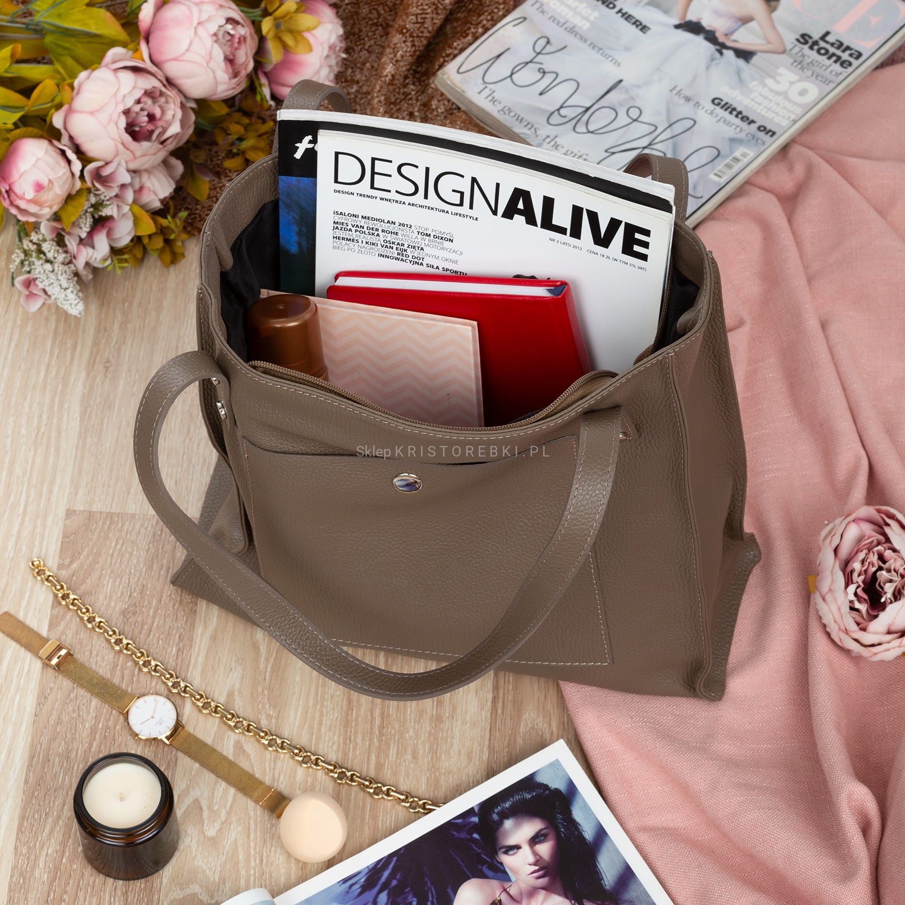 VERA PELLE torebka damska skórzana shopper z długimi rączkami na ramię V527 taupe
