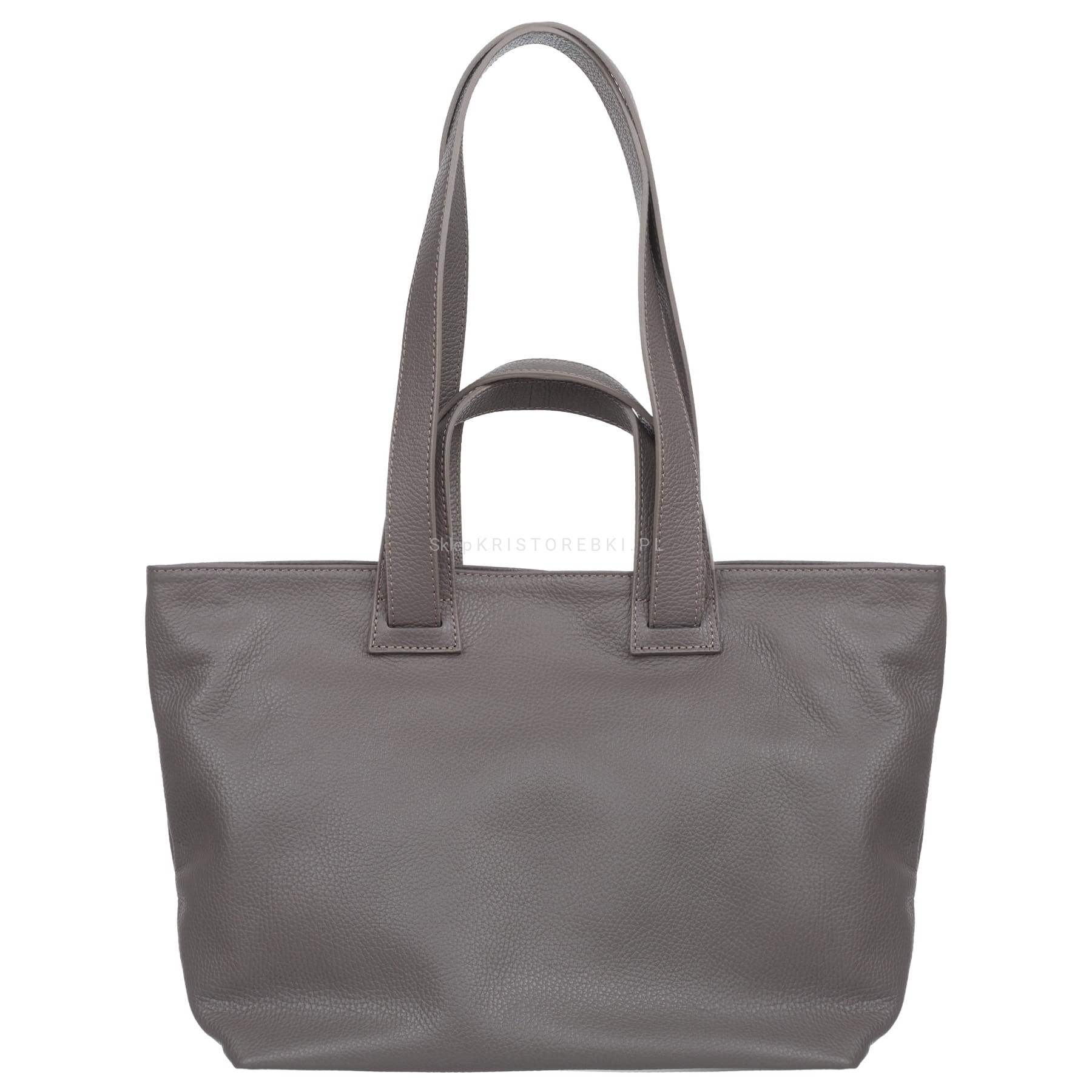 Torebka damska typu shopper znanej i cenionej na rynku europejskim marki VERA PELLE ITALY w kolorze CIEPŁYM SZARYM. Uszyta została bardzo starannie z najwyższej jakości włoskiej skóry naturalnej z widoczną fakturą. Torebka posiada długie i krótkie rączki, dzięki czemu można ją wygodnie nosić w ręku i na ramieniu. Posiada okucia w kolorze srebrnym i zamykana jest na solidny suwak i magnesik. Dwukomorowy środek wykończony jest podszewką. W środku znajdziesz dużą przegrodę zamykaną na suwak, praktyczną kieszonkę zamykaną na suwak oraz dwie otwarte małe kieszonki na telefon lub dokumenty. Spód torebki chronią przed zarysowaniami nóżki ochronne. Torebka jest bardzo pojemna i praktyczna. Będzie pasować do większości codziennych stylizacji.