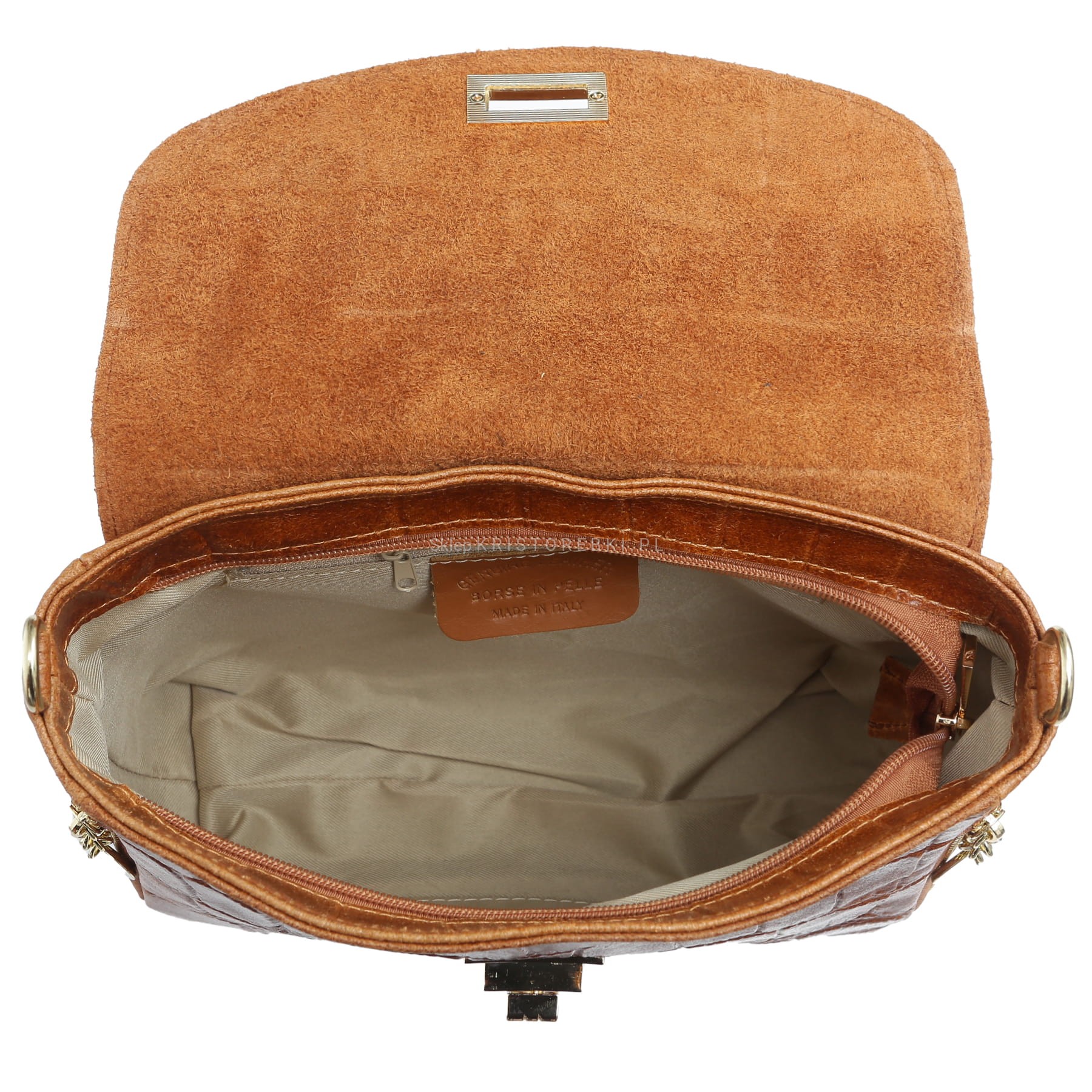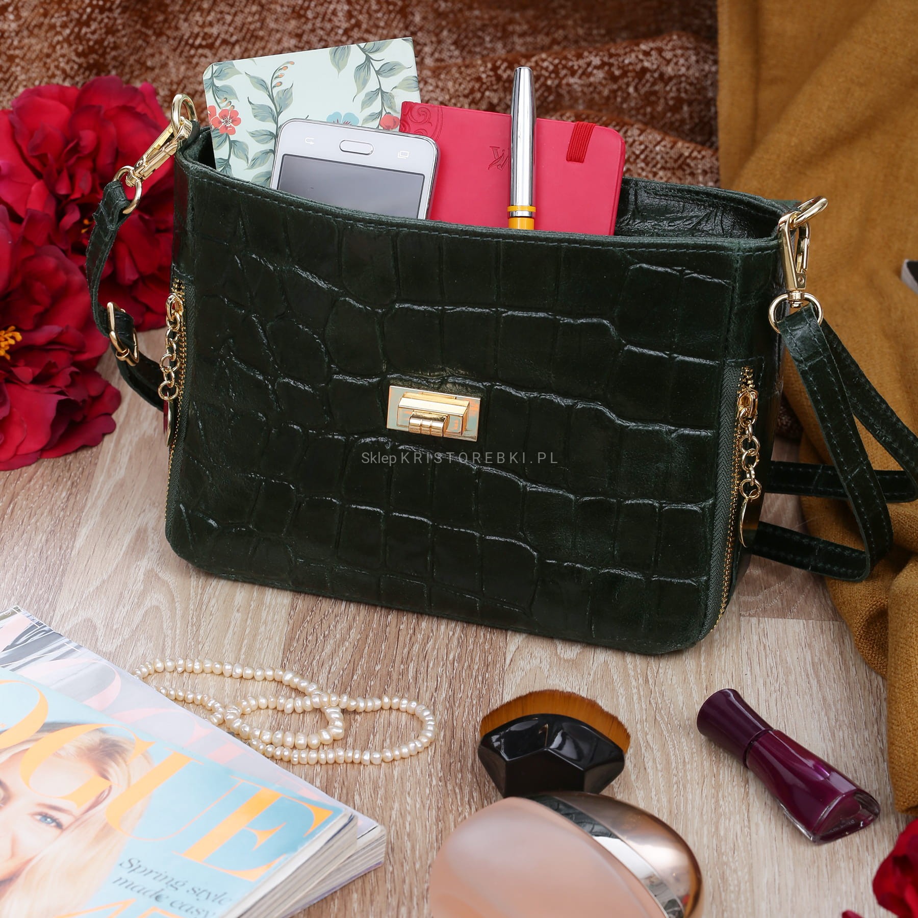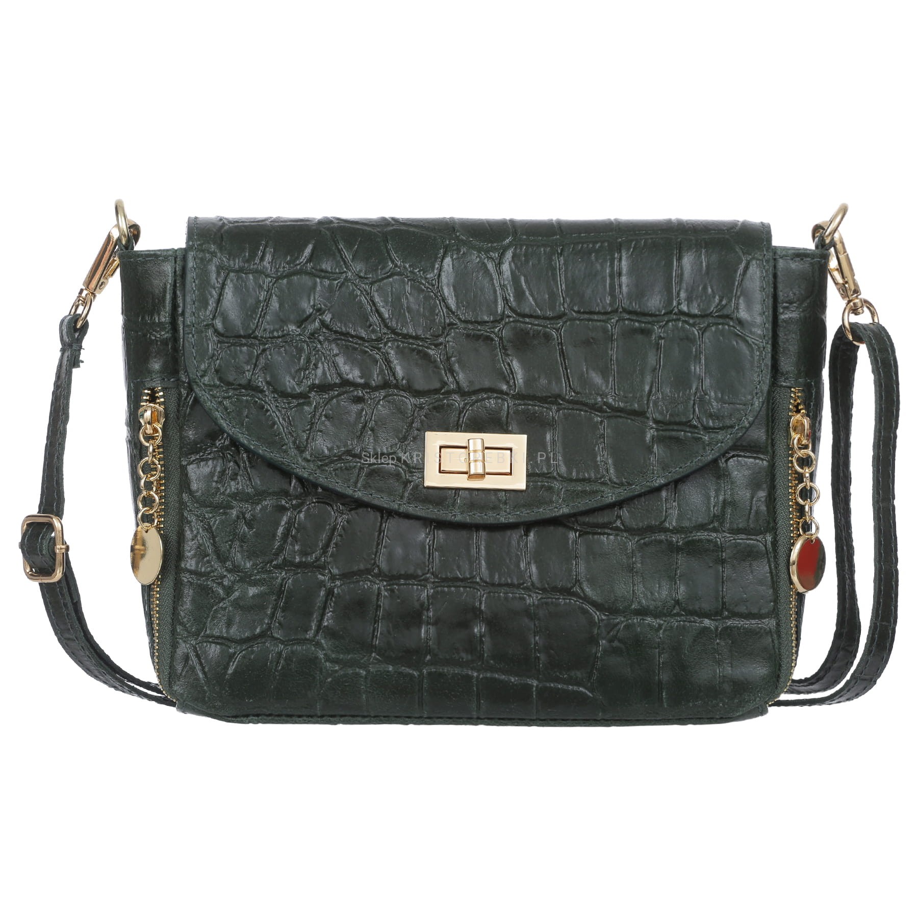 VERA PELLE torebka damska skórzana listonoszka kroko z paskiem V532 ciemna zielona