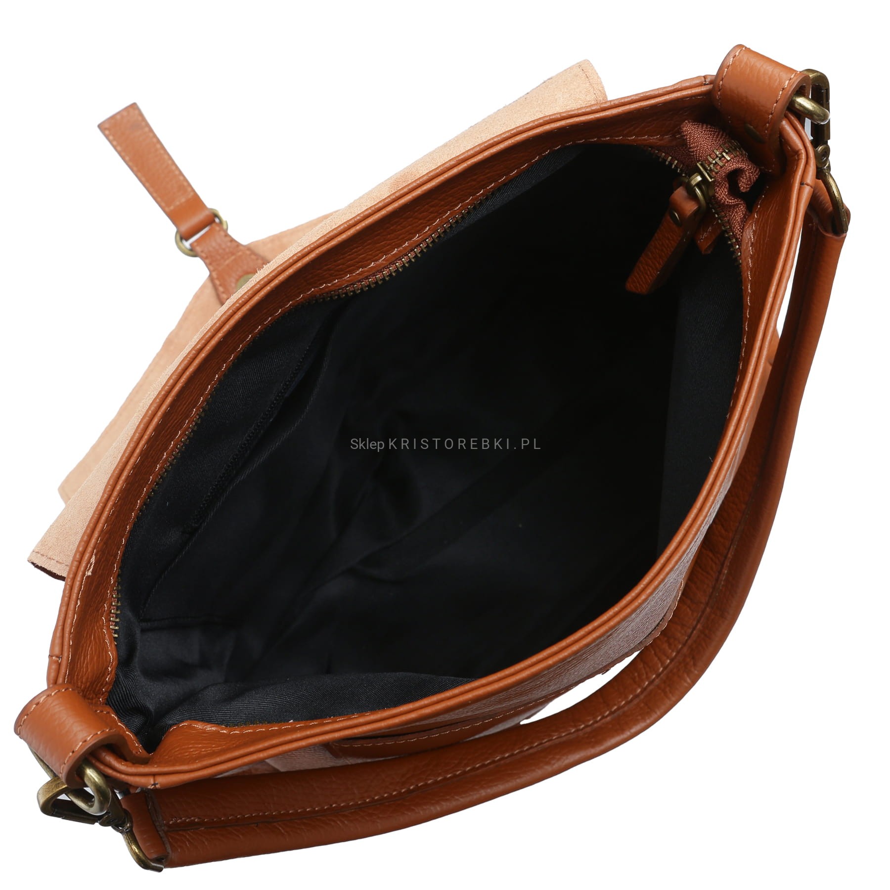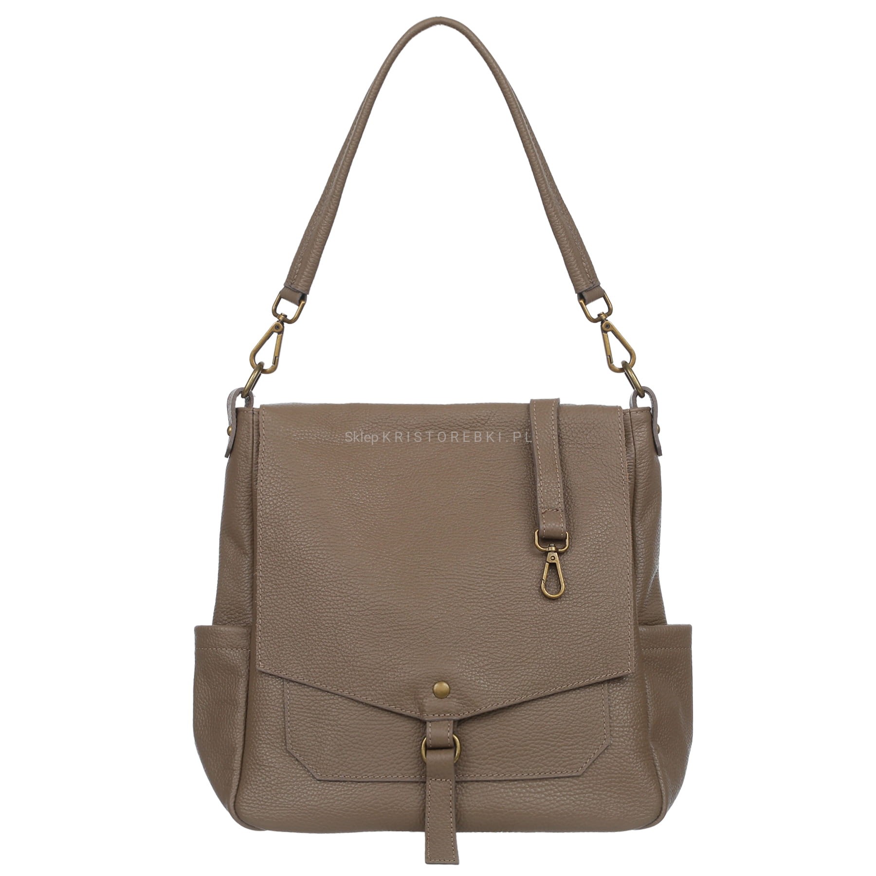 VERA PELLE torebka damska skórzana worek z klapą i paskiem na ramię V534 taupe