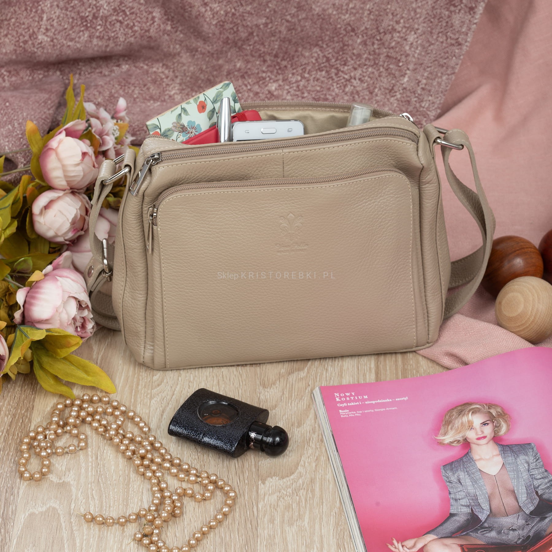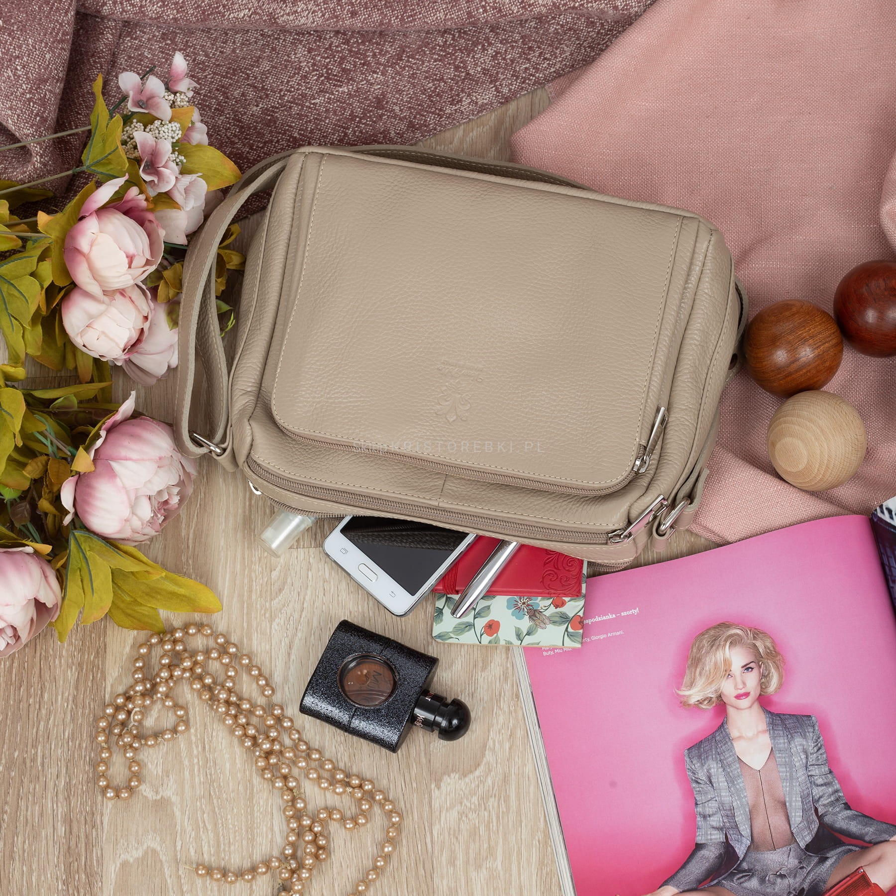 VERA PELLE torebka damska skórzana listonoszka z paskiem na ramię V535 beżowa