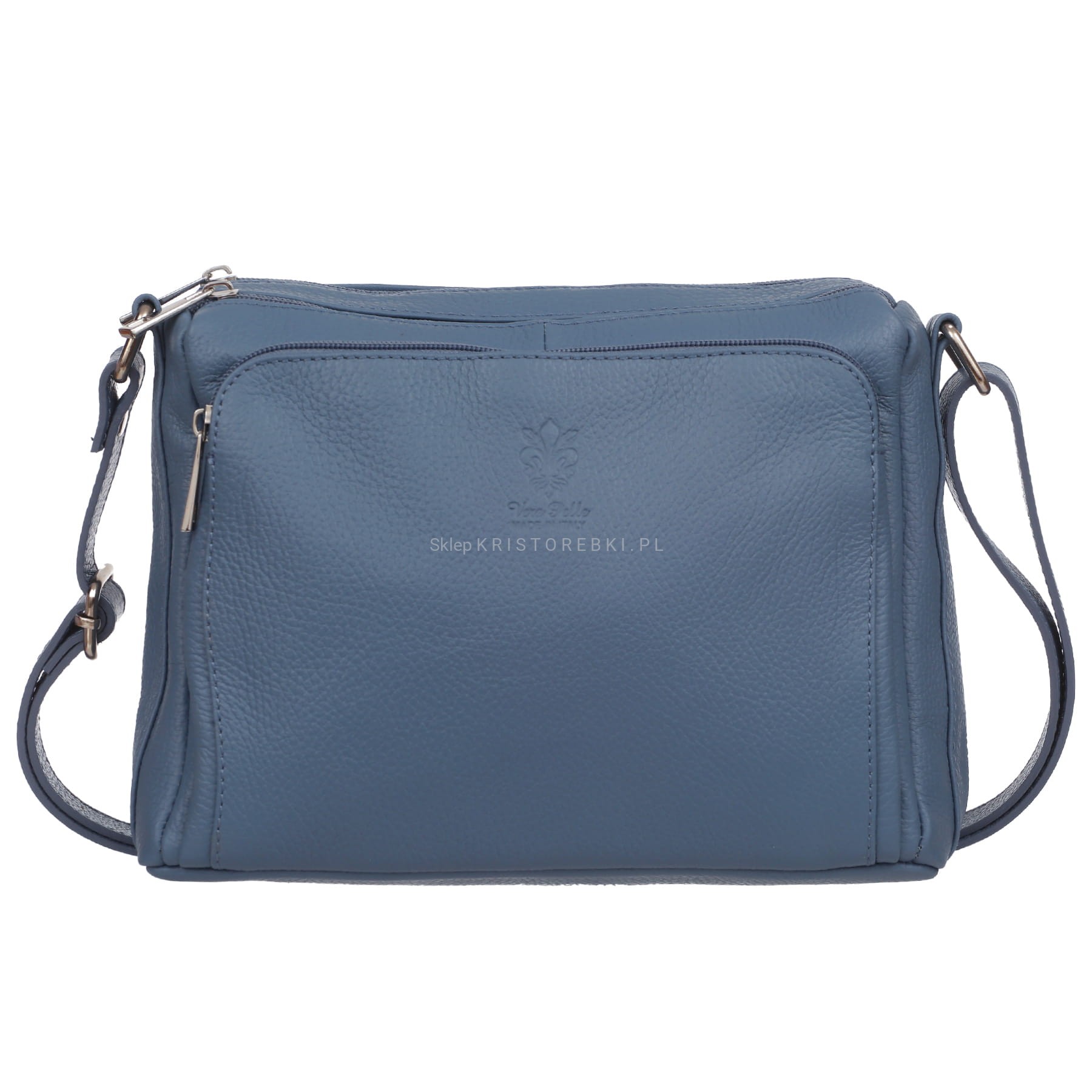 VERA PELLE torebka damska skórzana listonoszka z paskiem na ramię V535 ciemna jeansowa