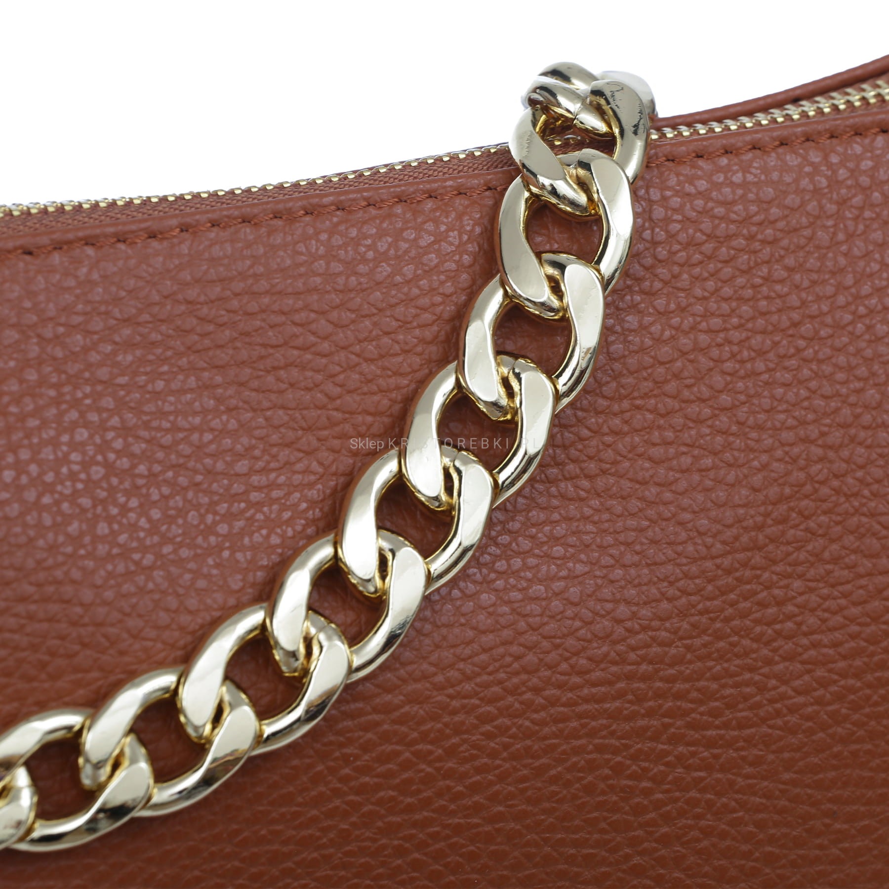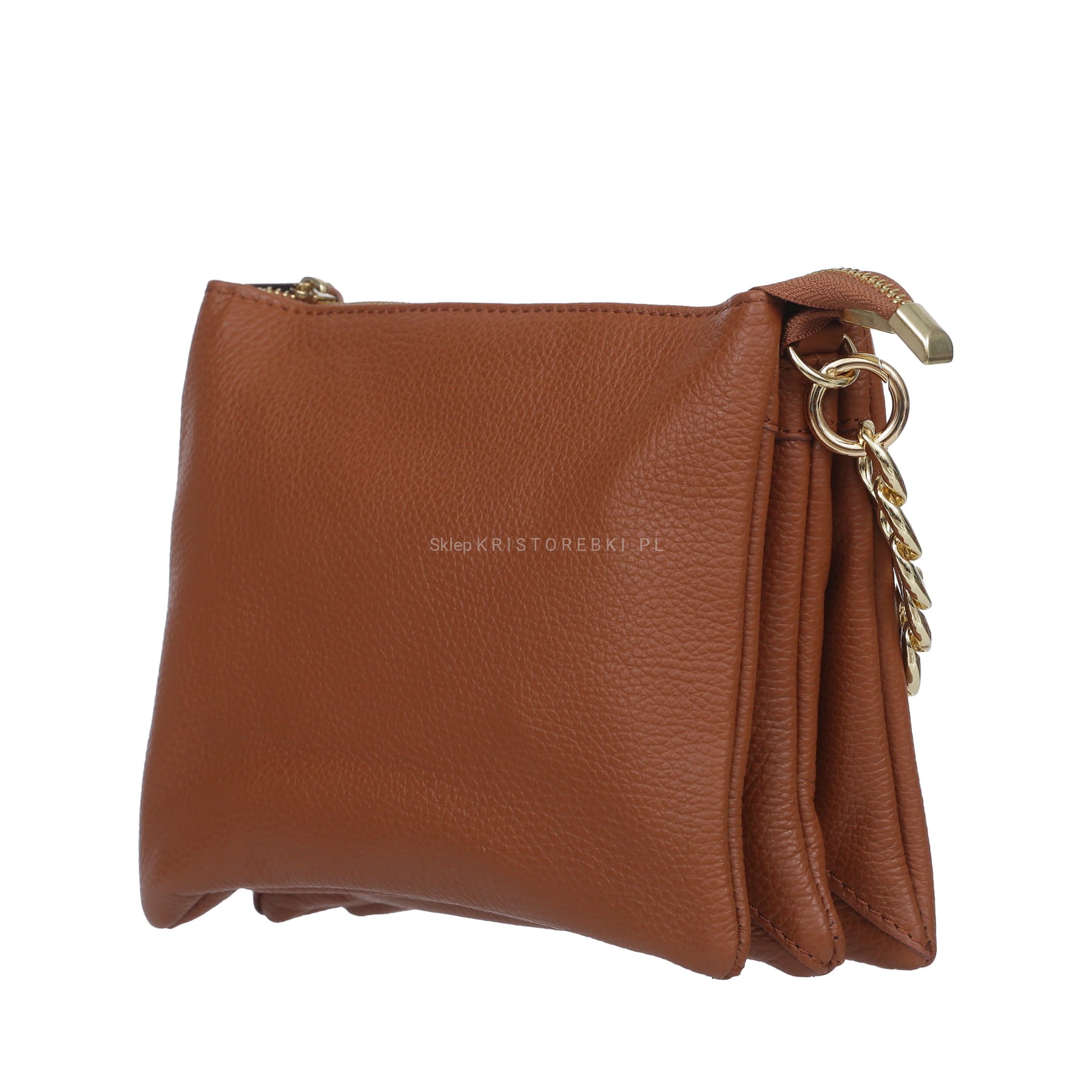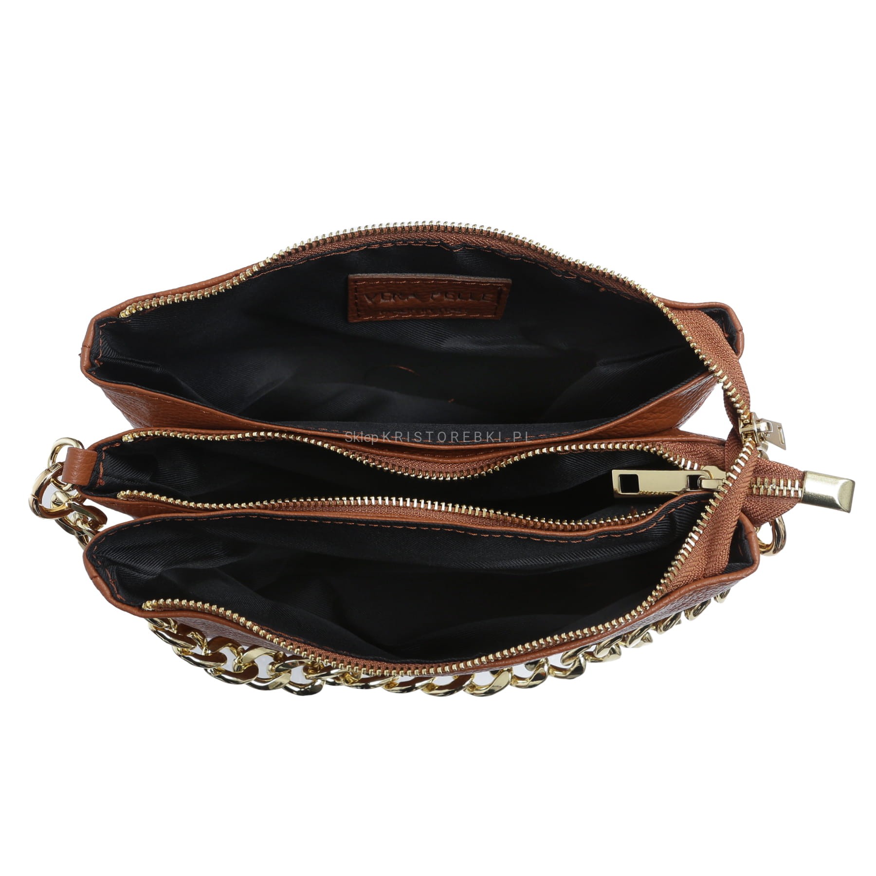VERA PELLE torebka damska skórzana listonoszka z łańcuchem i paskiem na ramię V536 czarna