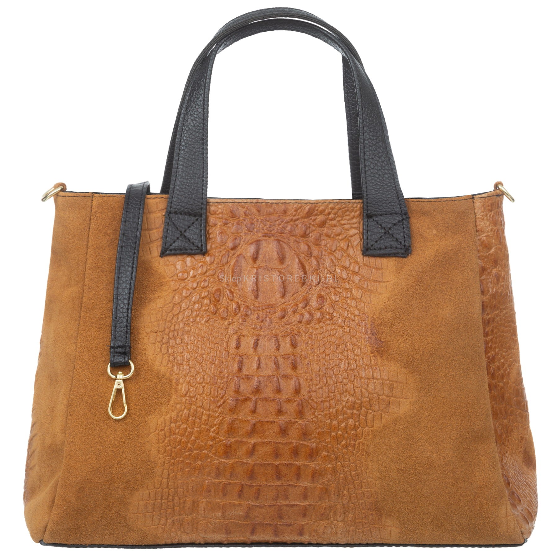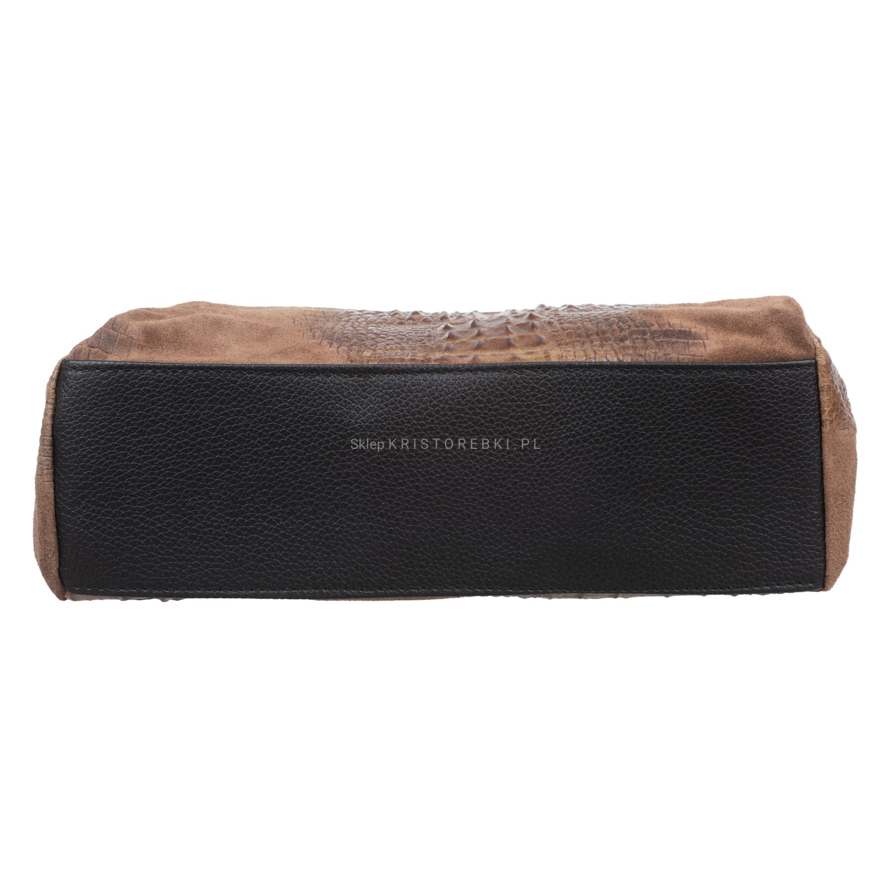 VERA PELLE torebka damska zamszowa shopper kroko z paskiem na ramię V543 camel