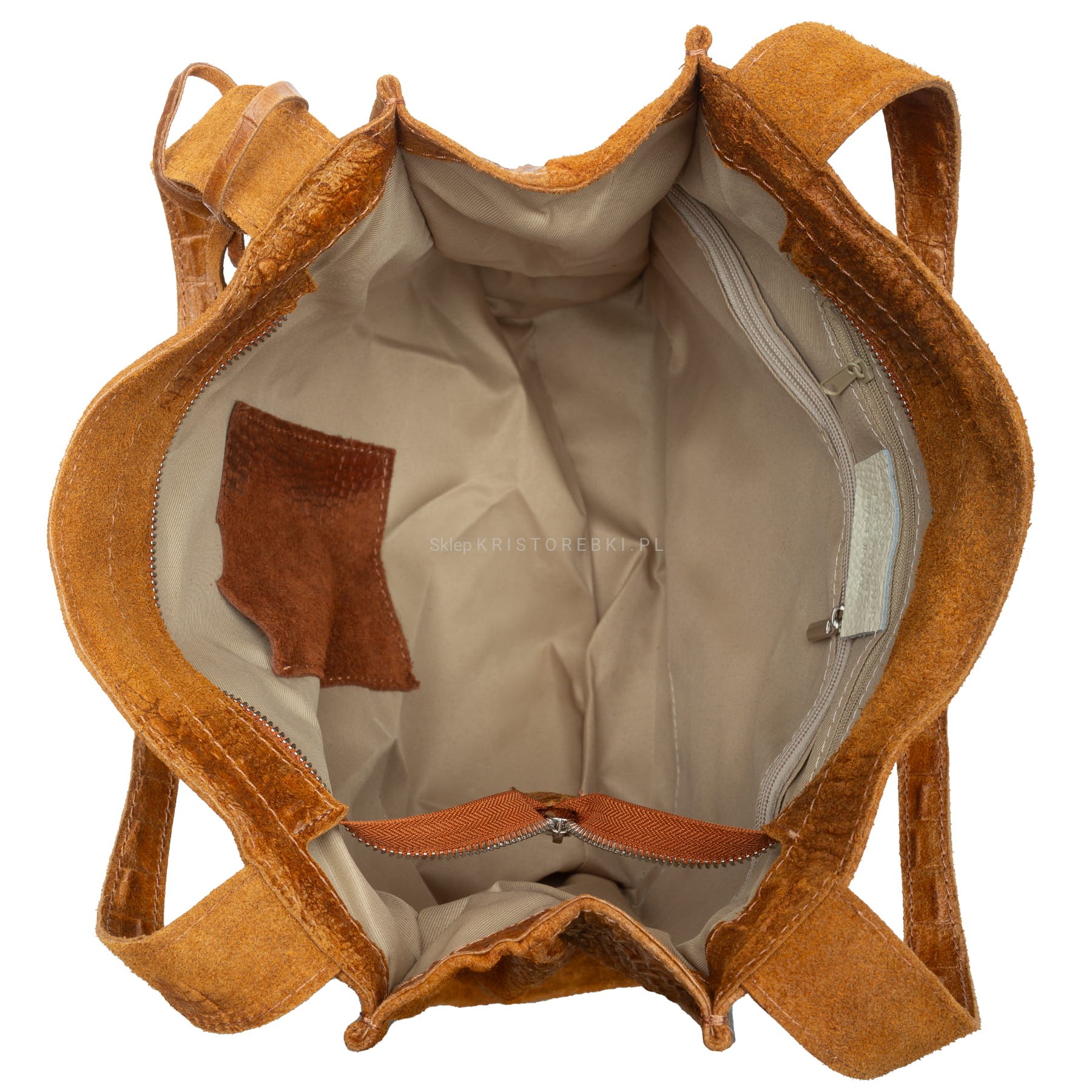 | Cechy wnętrza | w środku podszewka + przegroda na bocznej ściance zamykana na suwak + kieszonka na suwak + otwarta kieszonka na tel. lub dokumenty |