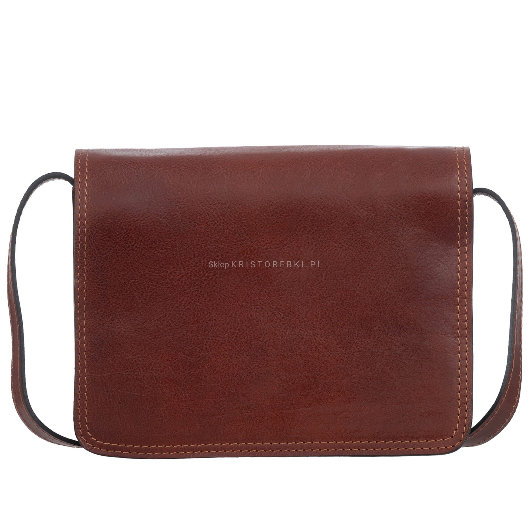VERA PELLE torebka damska skórzana listonoszka vintage duża z klapą i paskiem na ramię V554 brązowa