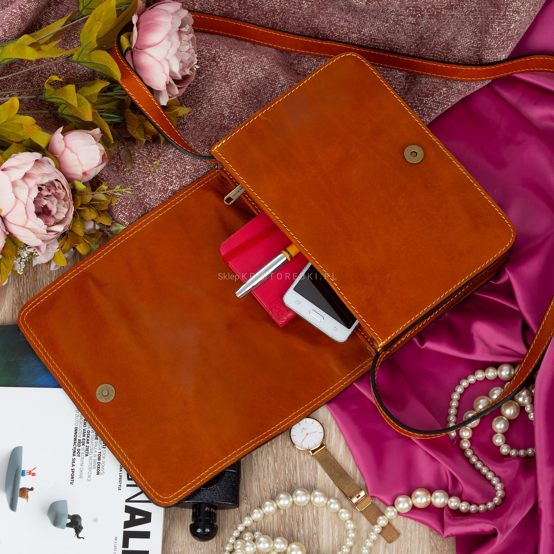 Duża torebka damska listonoszka w stylu vintage znanej i cenionej na rynku europejskim marki VERA PELLE ITALY w kolorze CAMEL. Uszyta została z najwyższej jakości, lekko połyskującej i przepięknie pachnącej włoskiej skóry naturalnej. Torebka posiada długi i regulowany pasek, dzięki czemu można ją wygodnie nosić na ramieniu i z łatwością dopasować do własnych preferencji. Torebka posiada mosiężne okucia i zamykana jest na praktyczną klapę na magnes. W środku znajdują się 3 niezależne komory z czego środkowa zamykana jest na suwak. Dodatkowo w jednej z komór na ściance bocznej znajduje się dodatkowa kieszeń zamykana na suwak. Z tyłu znajduje się kolejna praktyczna kieszeń zamykana na suwak. Torebka jest bardzo wygodna i praktyczna. Będzie świetnym dodatkiem do codziennych i wyjściowych stylizacji.