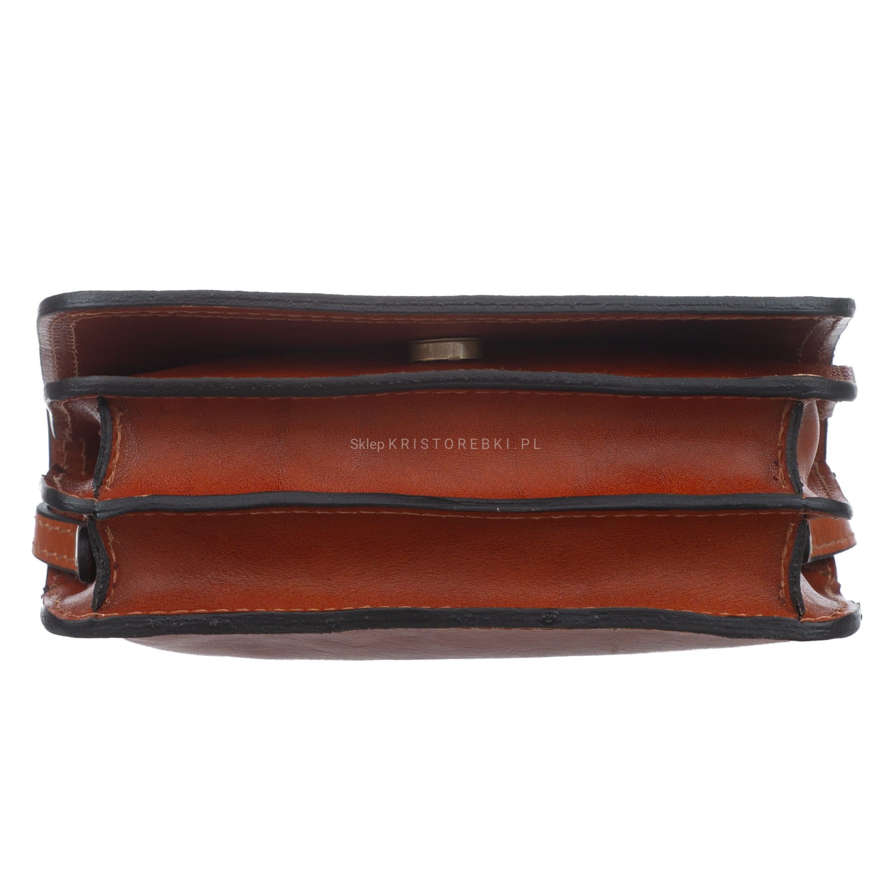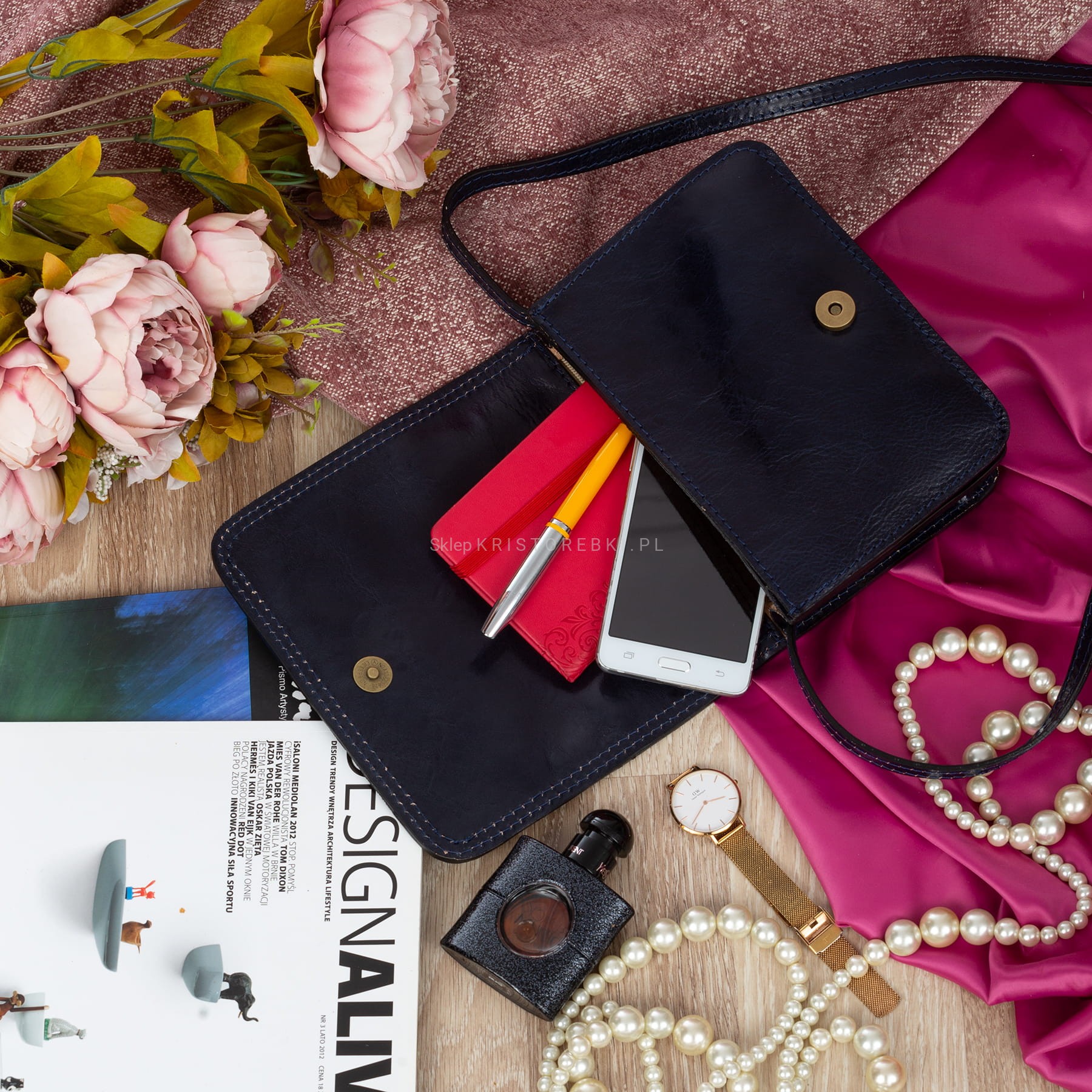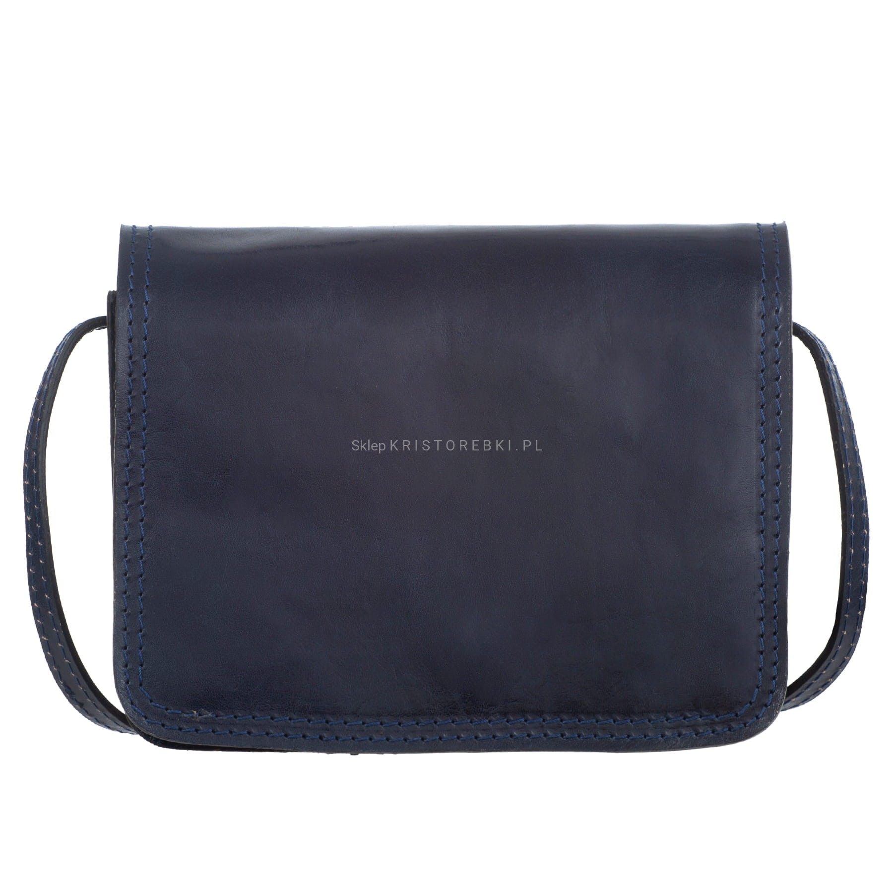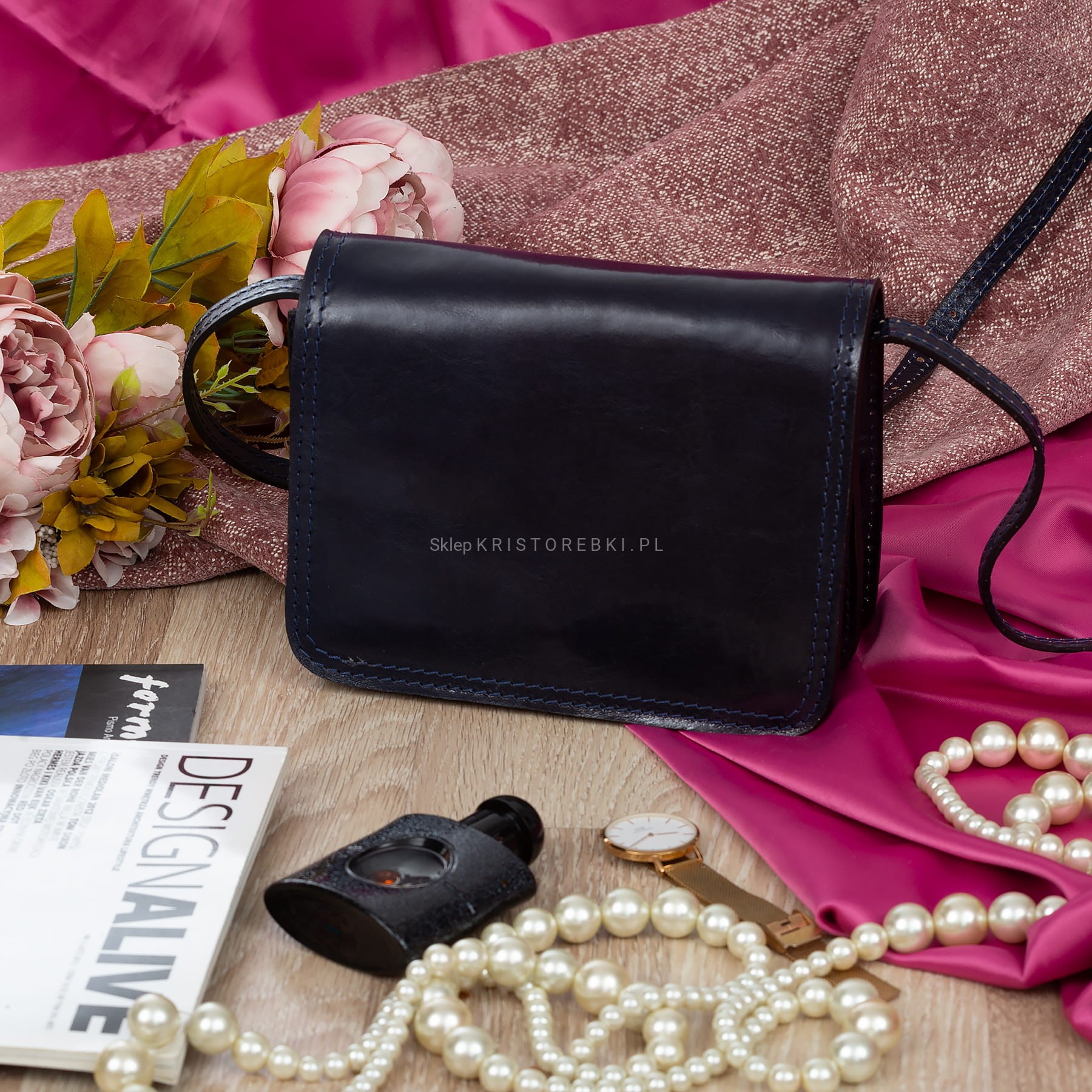 VERA PELLE torebka damska skórzana listonoszka vintage mała z klapą i paskiem na ramię V562 granatowa