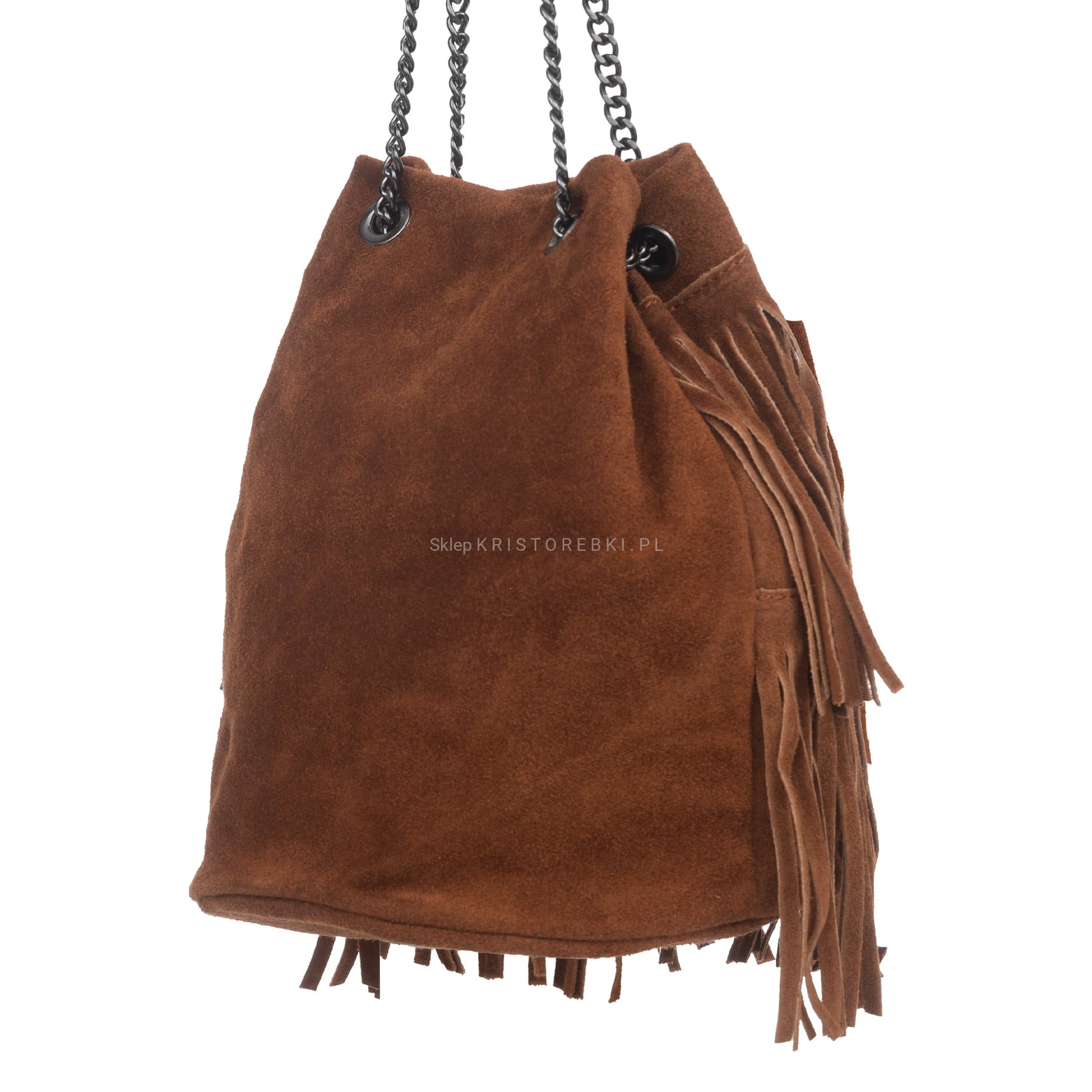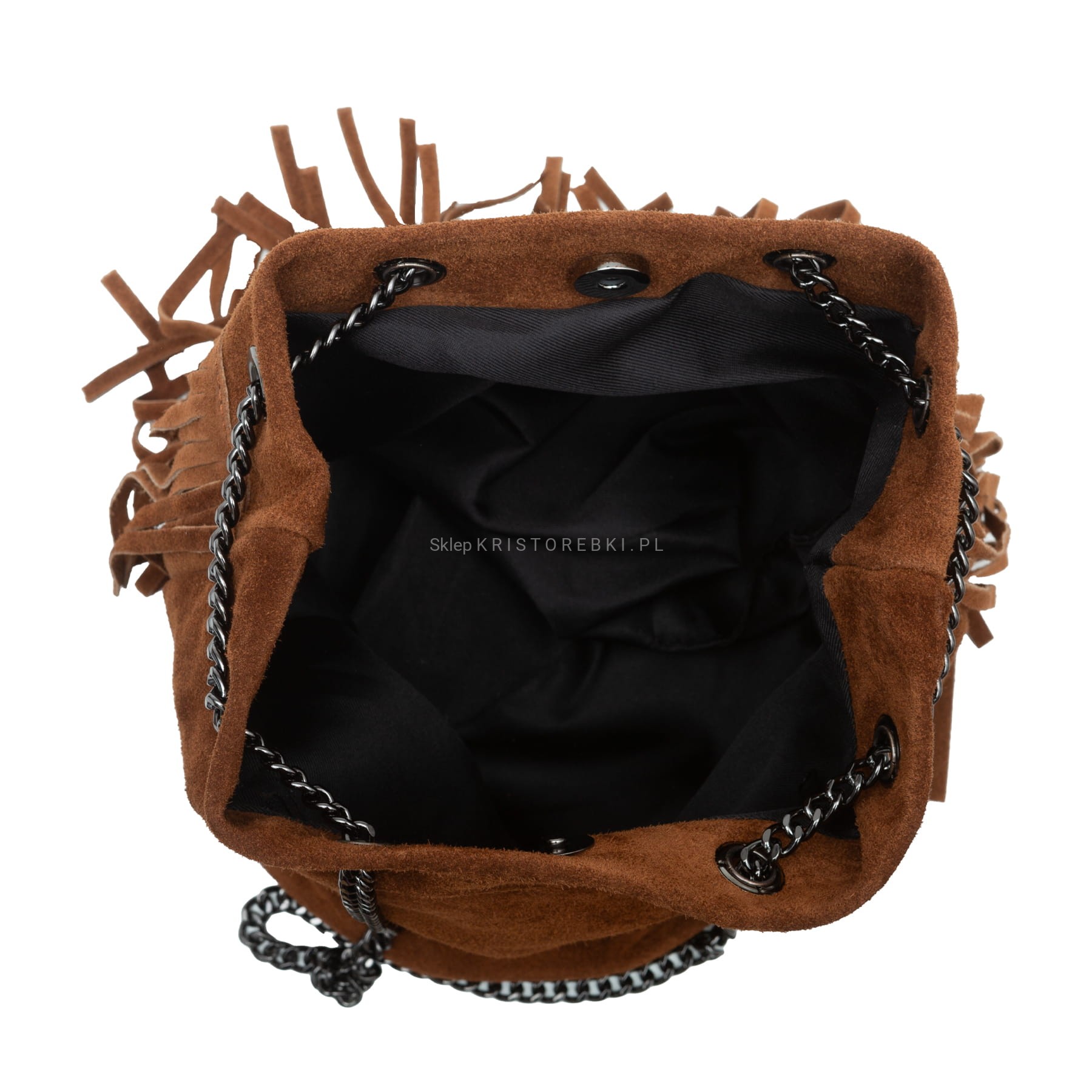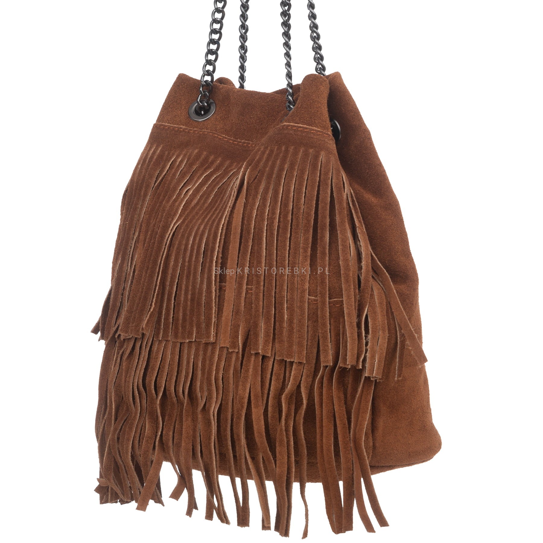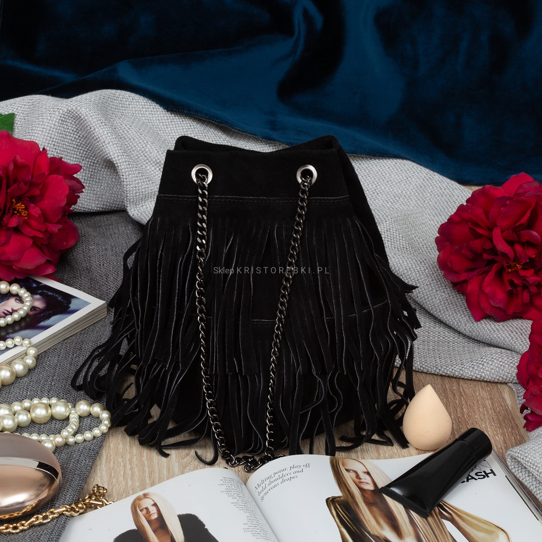VERA PELLE torebka damska zamszowa listonoszka boho z frędzlami i łańcuszkiem V569 czarna