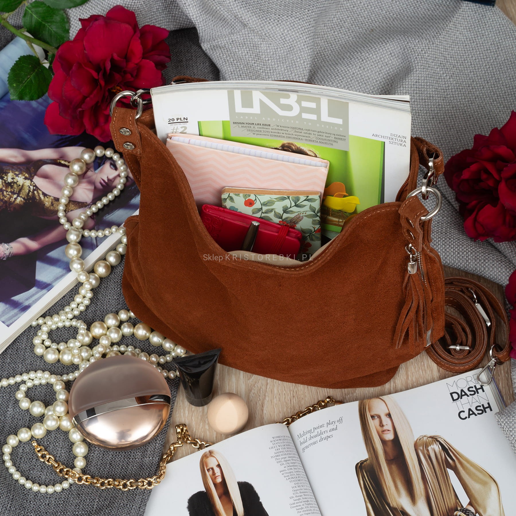 | Dodatkowe informacje | z boku pionowa kieszeń zamykana na suwak z ozdobnym frędzelkiem + z tyłu kieszonka zamykana na suwak |