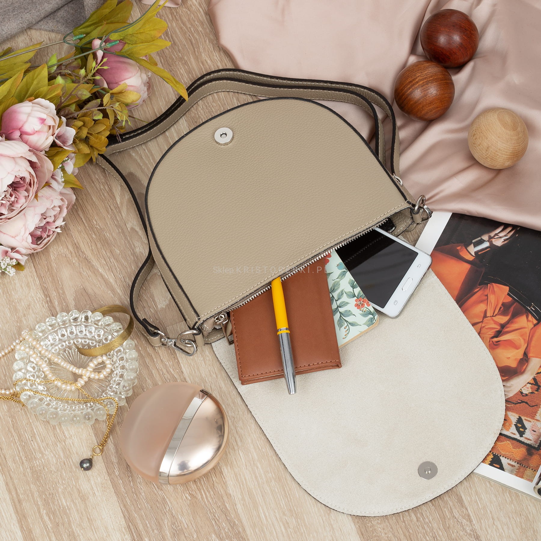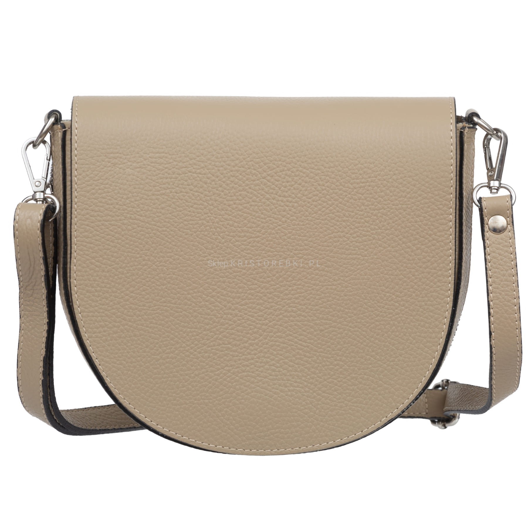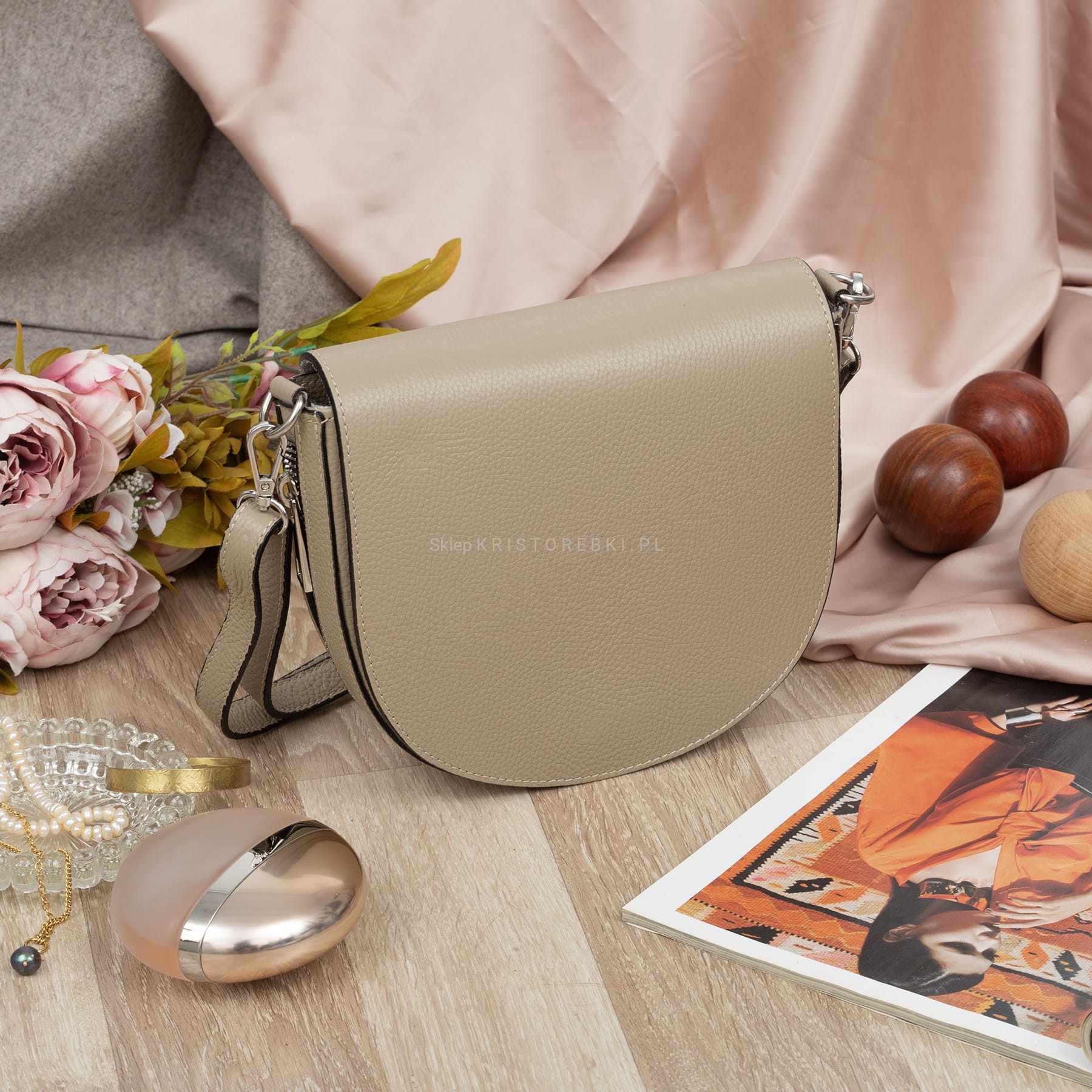 VERA PELLE torebka damska skórzana listonoszka z klapą i paskiem V574 beżowa