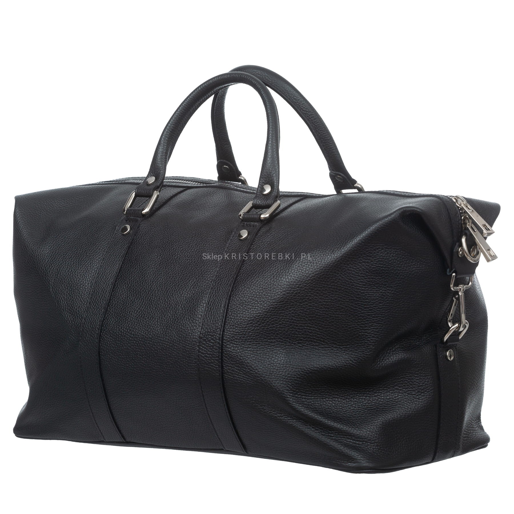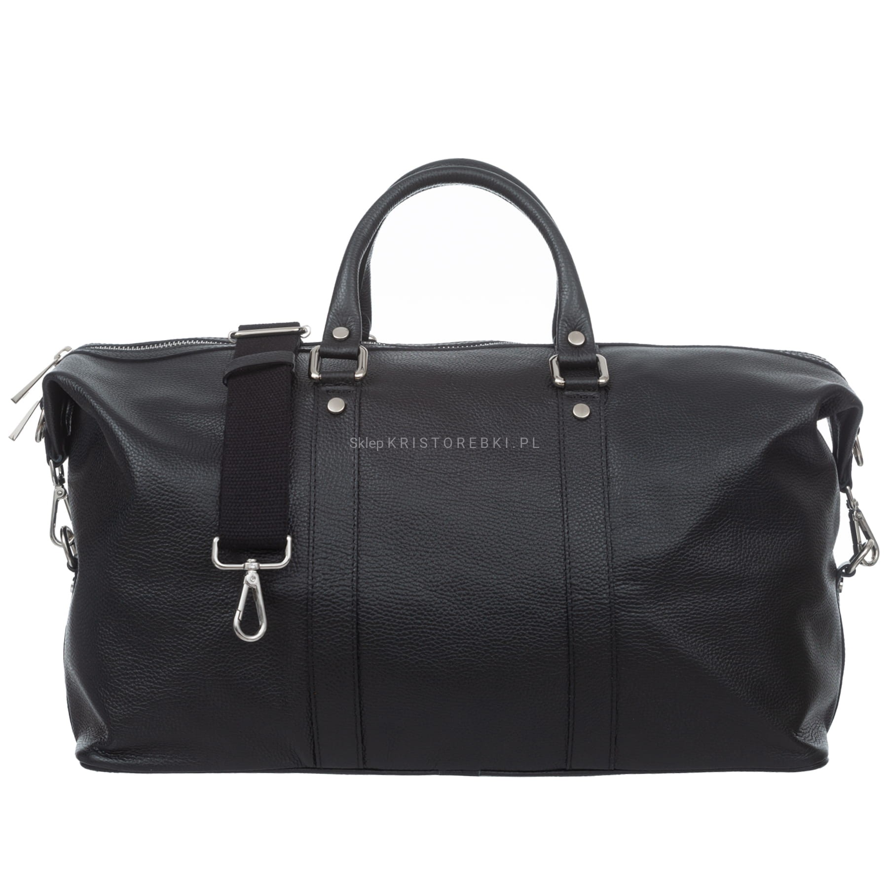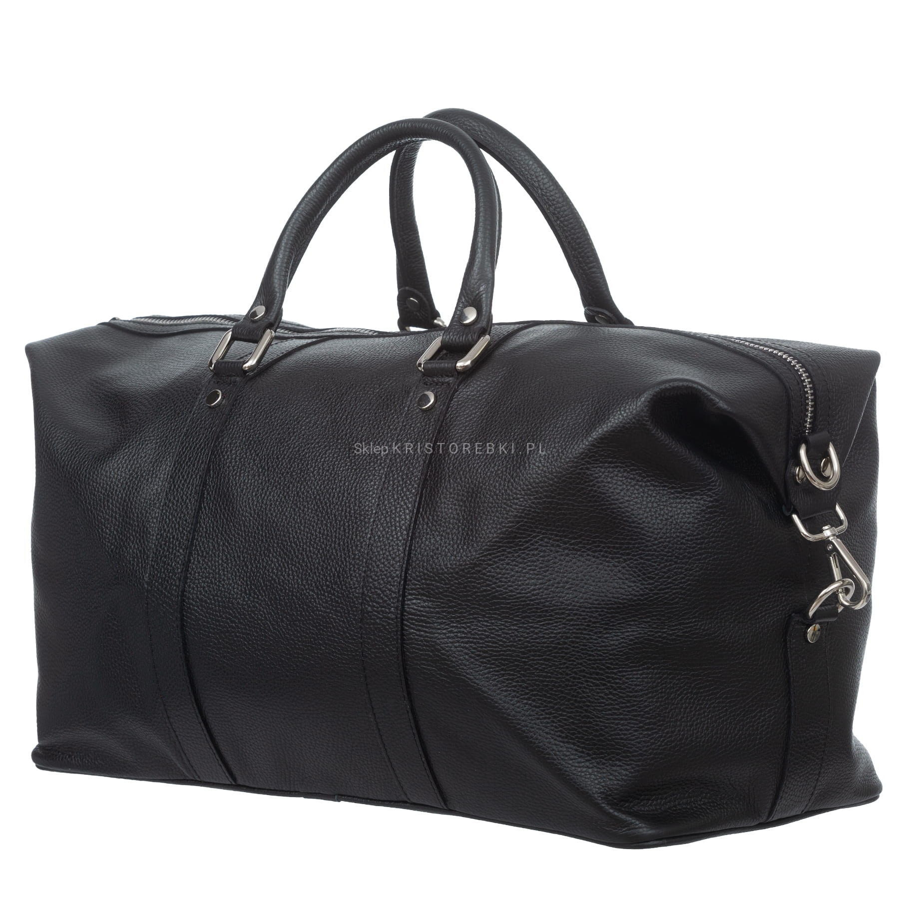 Włoska skórzana sportowa duża torba męska znanej i cenionej na rynku europejskim marki VERA PELLE ITALY w kolorze CZARNYM. Wykonana została z wysoko gatunkowej, grubej i przyjemnie pachnącej włoskiej skóry naturalnej. Torba posiada srebrne okucia oraz długie rączki, dzięki czemu można ją wygodnie nosić w ręku. Dodatkowo do torby dołączony został długi, odpinany i regulowany pasek, dzięki czemu można ją nosić również wygodnie na ramieniu i dopasować do własnych preferencji. Jednokomorowy środek zamykany jest na solidny suwak i wykończony estetyczną podszewką. Dodatkowo w środku znajduje się praktyczna duża kieszeń zamykana na suwak. Spód torby posiada nóżki ochronne. Torba będzie świetnym dodatkiem do codziennych, sportowych i podróżnych stylizacji.