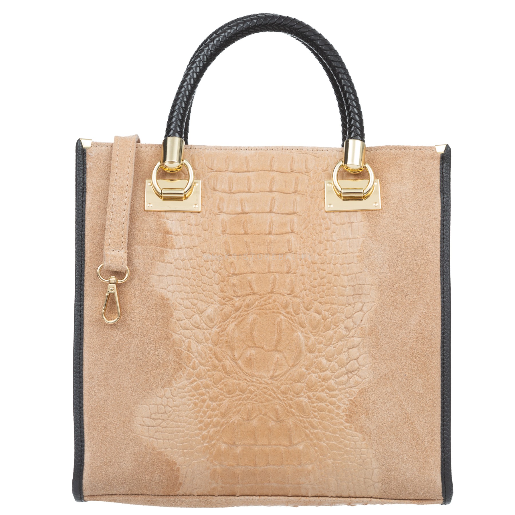 Włoska skórzana torebka klasyczna znanej i cenionej na rynku europejskim marki VERA PELLE ITALY w kolorze BEŻOWYM. Wyprodukowana została z najwyższej jakości, miłej w dotyku i przyjemnie pachnącej zamszowej skóry naturalnej z wytłoczonym wzorem. Torebka posiada okucia w kolorze złotym i zapinana jest na solidny suwak. Torebka posiada dwie wygodne rączki do noszenia w ręku. Dodatkowo posiada w zestawie długi, odpinany i regulowany pasek, dzięki czemu można ją wygodnie nosić również na ramieniu i z łatwością dopasować do własnych preferencji. Duży jednokomorowy środek wykończony został estetyczną podszewką a w środku znajduje się praktyczna kieszonka zamykana na suwak oraz dwie małe otwarte kieszonki na telefon lub dokumenty. Spód torebki został dodatkowo usztywniony, dzięki czemu torebka utrzymuje swój kształt. Torebka jest bardzo pojemna i praktyczna. Będzie pasowała do większości codziennych i wyjściowych stylizacji.