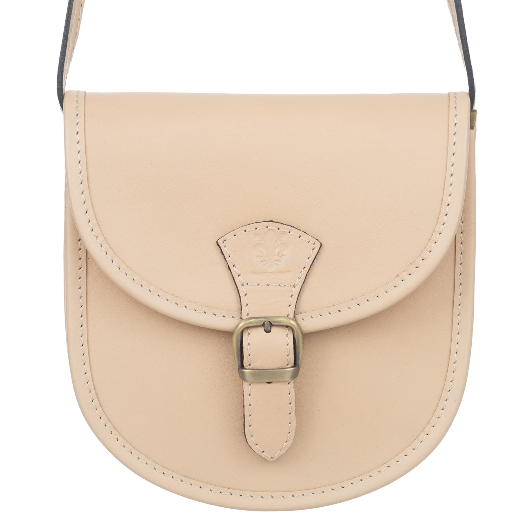 VERA PELLE torebka damska skórzana listonoszka z paskiem na ramię V607 beżowa