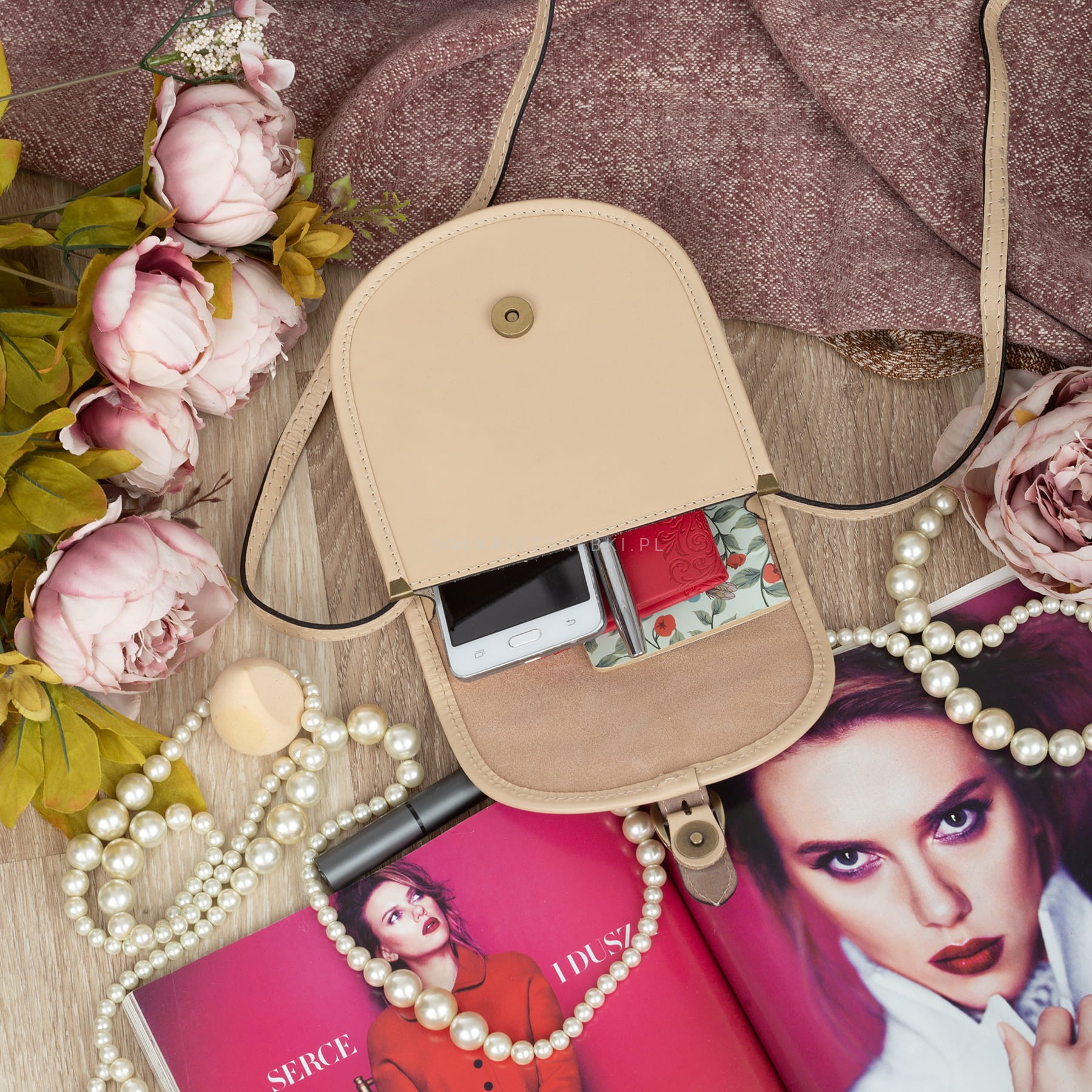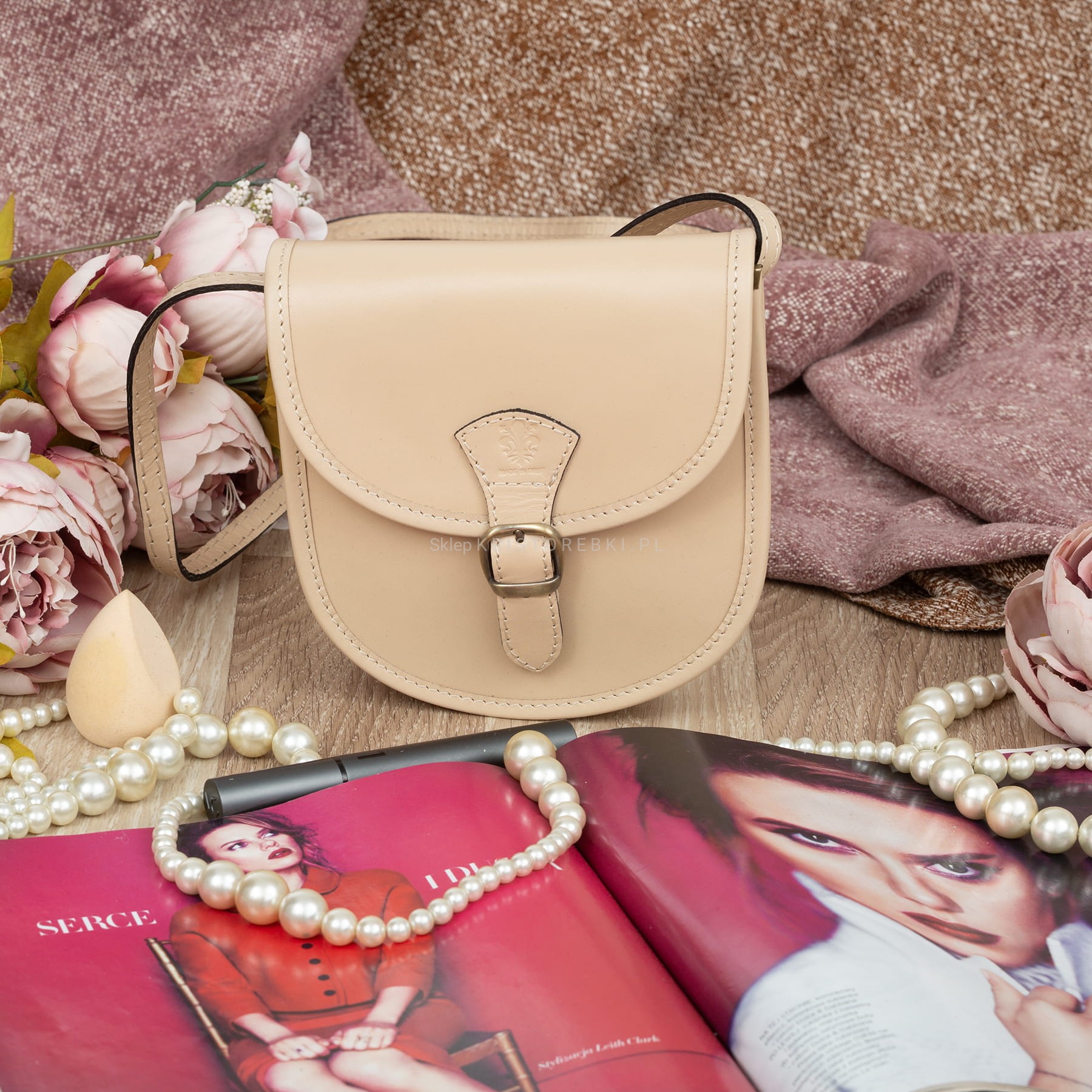 Torebka damska, listonoszka znanej i cenionej marki VERA PELLE ITALY w kolorze BEŻOWYM. Torebka wykonana jest z najwyższej jakości skóry naturalnej licowej produkcji włoskiej. Zaletą torebki jest jej nietuzinkowy wygląd oraz ciekawa zaokrąglona przednia klapa. Posiada mosiężne okucia oraz zamykana jest na praktyczny magnesik. Torebka jest usztywniona, dzięki czemu nawet bez wypełnienia pięknie trzyma swój kształt. Jest mała (nie mieści formatu A4) i zgrabna, dzięki czemu będzie praktyczna w użytkowaniu i sprawdzi się na wszystkie eleganckie jak i mniej formalne wyjścia. Mimo niedużego rozmiaru bez trudu pomieści wszystkie najpotrzebniejsze rzeczy damskie. W środku posiada dodatkową kieszonkę zamykaną na suwak na drobiazgi. Posiada długi i regulowany pasek, dzięki czemu bez trudu dopasujesz ja do swoich preferencji.
