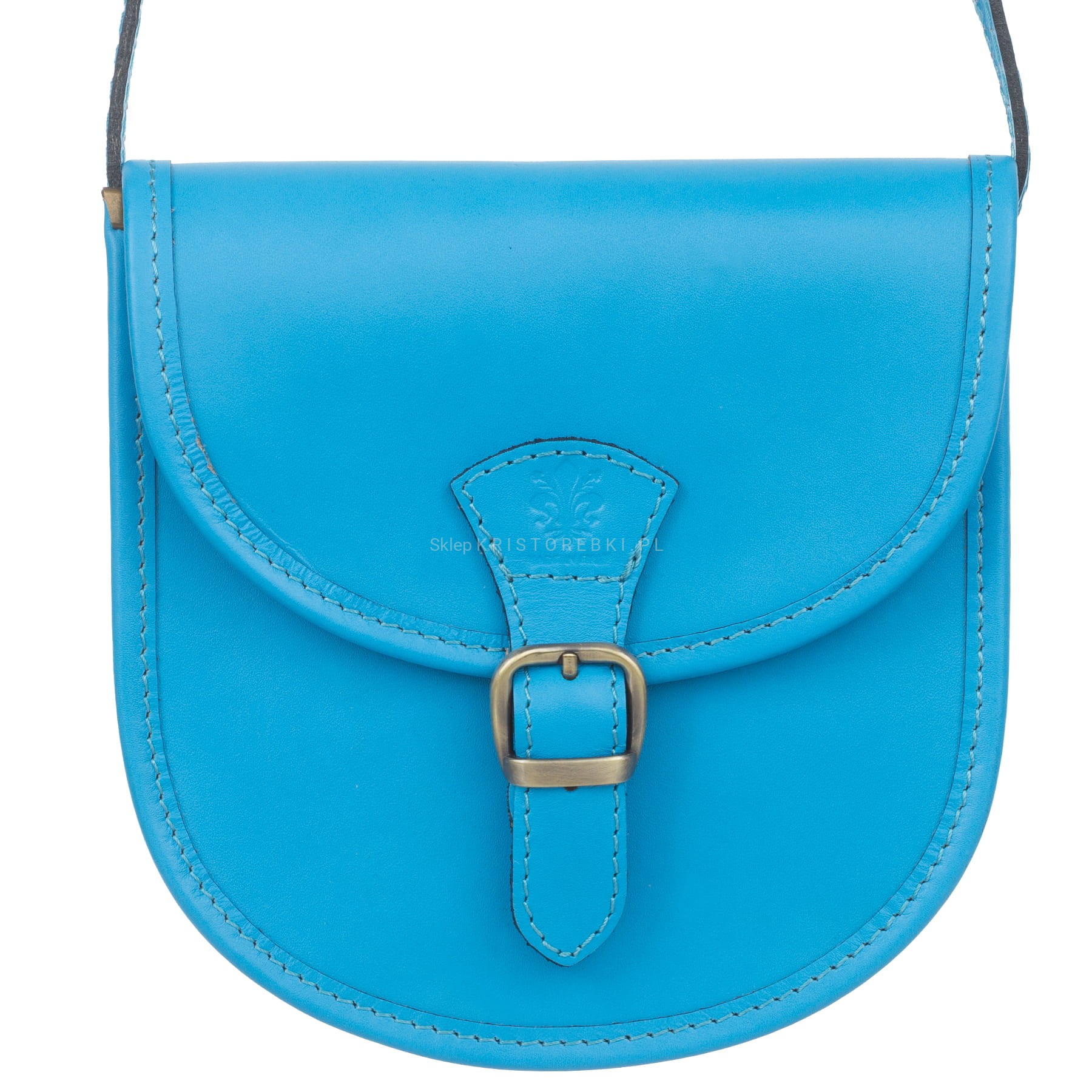 VERA PELLE torebka damska skórzana listonoszka z paskiem na ramię V607 niebieska