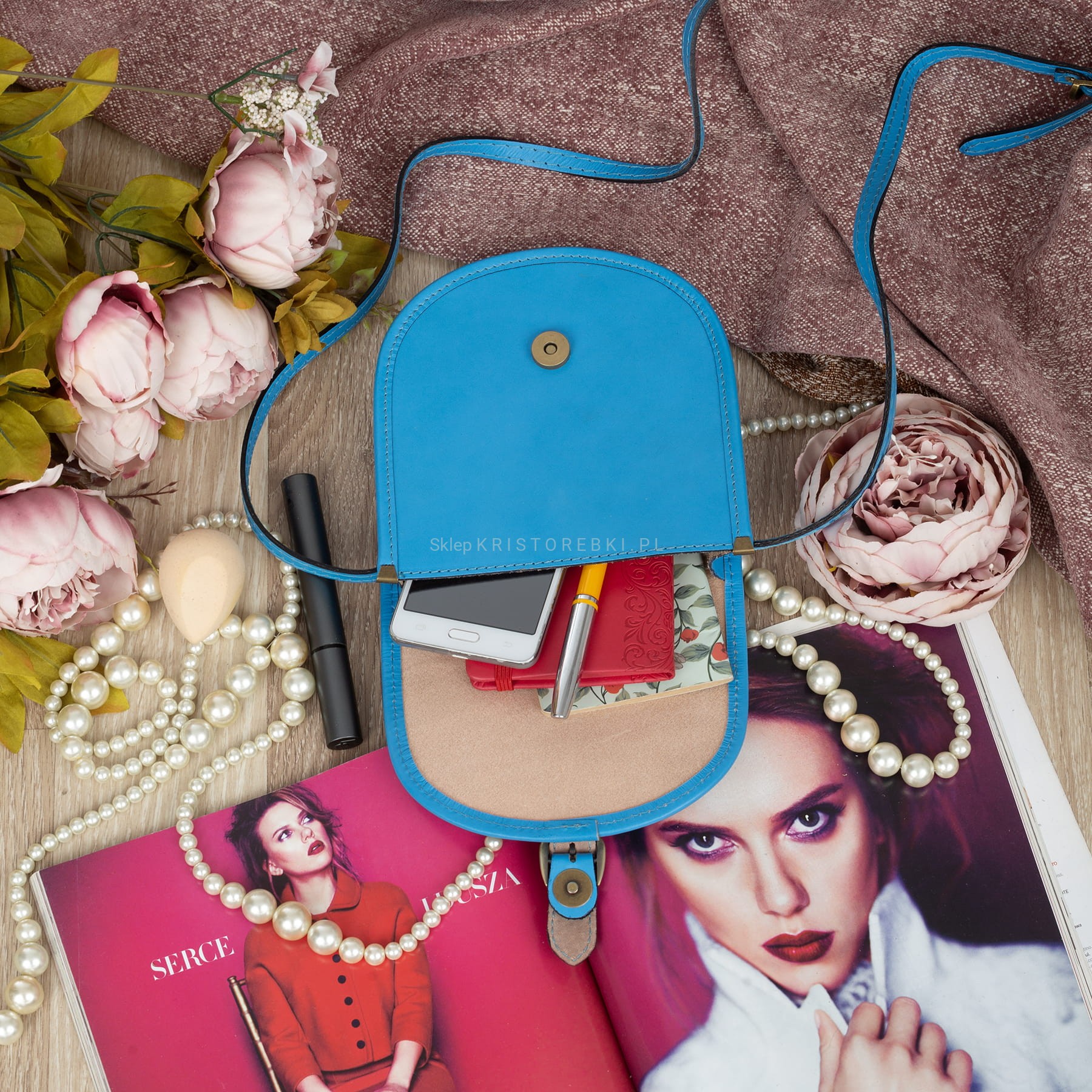 Torebka damska, listonoszka znanej i cenionej marki VERA PELLE ITALY w kolorze NIEBIESKIM. Torebka wykonana jest z najwyższej jakości skóry naturalnej licowej produkcji włoskiej. Zaletą torebki jest jej nietuzinkowy wygląd oraz ciekawa zaokrąglona przednia klapa. Posiada mosiężne okucia oraz zamykana jest na praktyczny magnesik. Torebka jest usztywniona, dzięki czemu nawet bez wypełnienia pięknie trzyma swój kształt. Jest mała (nie mieści formatu A4) i zgrabna, dzięki czemu będzie praktyczna w użytkowaniu i sprawdzi się na wszystkie eleganckie jak i mniej formalne wyjścia. Mimo niedużego rozmiaru bez trudu pomieści wszystkie najpotrzebniejsze rzeczy damskie. W środku posiada dodatkową kieszonkę zamykaną na suwak na drobiazgi. Posiada długi i regulowany pasek, dzięki czemu bez trudu dopasujesz ja do swoich preferencji.