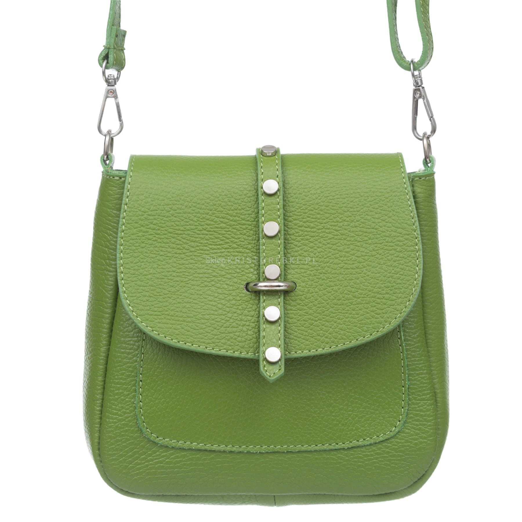 Torebka damska listonoszka znanej i cenionej na rynku europejskim marki VERA PELLE ITALY w kolorze CIEMNEJ LIMONKI. Uszyta została bardzo starannie z najwyższej jakości włoskiej skóry naturalnej z widoczną fakturą. Posiada w zestawie odpinany i regulowany pasek o maksymalnej długości 120 cm do wygodnego noszenia na ramieniu. Torebka posiada srebrne okucia i zamykana jest na praktyczną klapę z przewlekanym paseczkiem z ozdobnymi ćwiekami. Jednokomorowy środek zamykany jest dodatkowo na wygodny suwak i wykończony estetyczną podszewką. Dodatkowo w środku znajdziesz praktyczną kieszonkę zamykaną na suwak na telefon lub drobiazgi. Z tyłu torebki znajduje się kolejna praktyczna kieszeń zamykana na suwak. Torebka jest wygodna, praktyczna i dosyć sztywna dzięki czemu nawet bez wypełnienia ładnie prezentuje swój kształt. Będzie świetnym dodatkiem do codziennych i wyjściowych stylizacji.