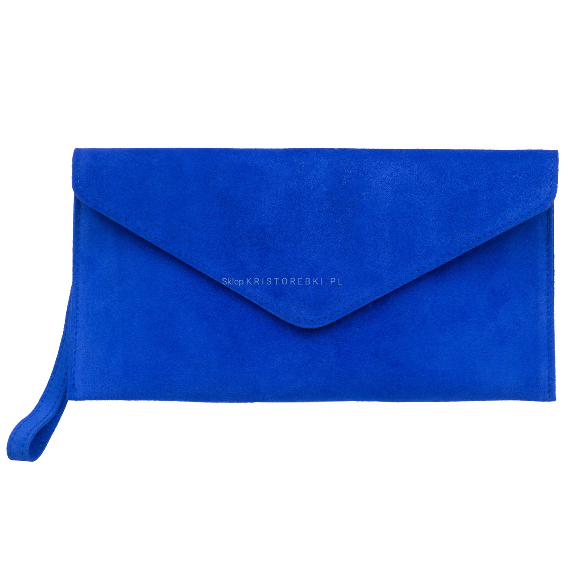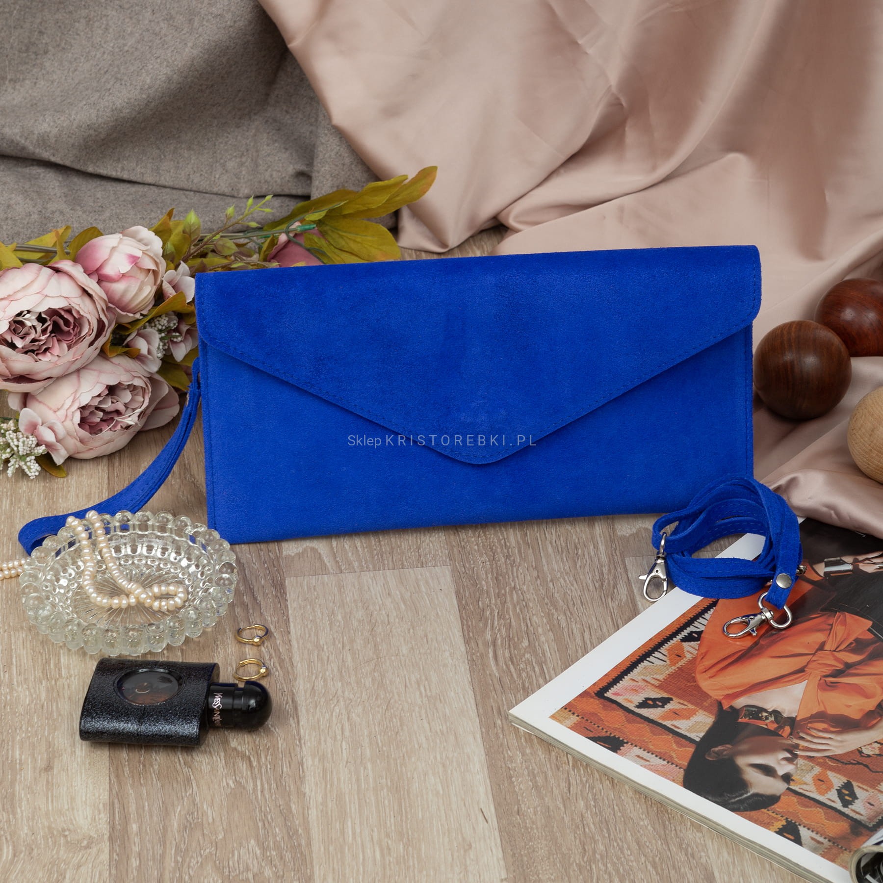 VERA PELLE torebka damska zamszowa kopertówka listonoszka z paskiem na ramię V646 chabrowa